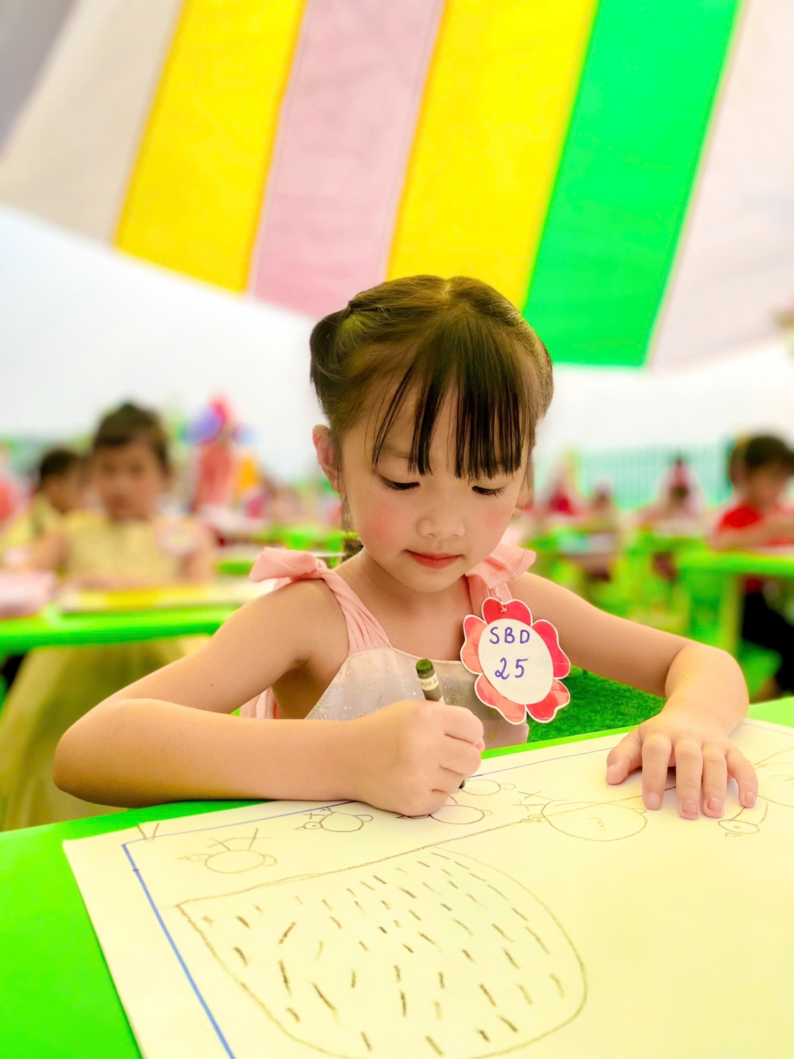 Với phần thi bé khéo tay: các bé mẫu giáo 3 – 5 tuổi được thể hiện sự khéo tay của mình qua các bài vẽ , nặn, xé dán theo chủ đề đã học .Các bé nhà trẻ thể hiện sự khéo léo qua việc tô màu các bức tranh sinh động và đẹp.