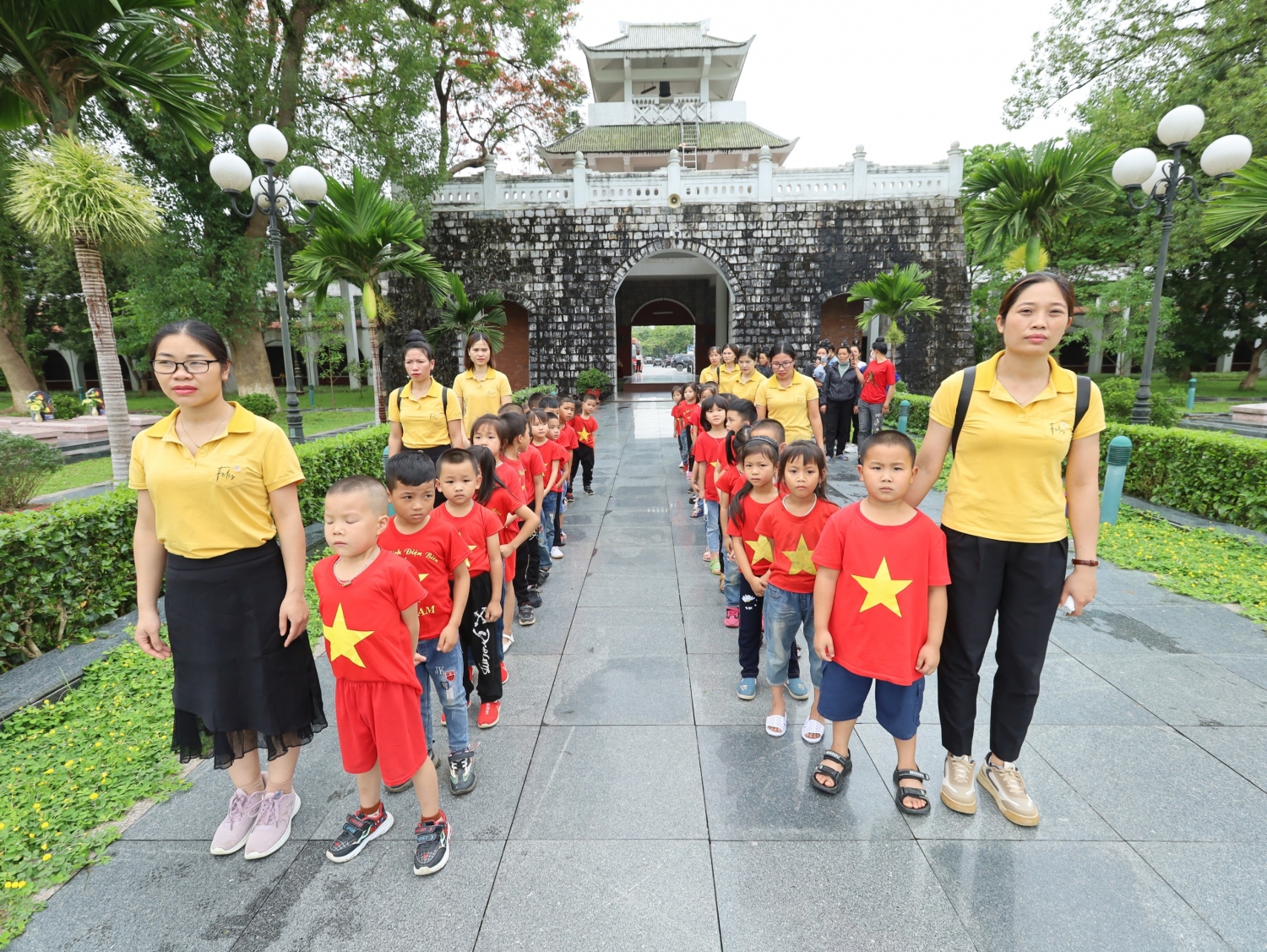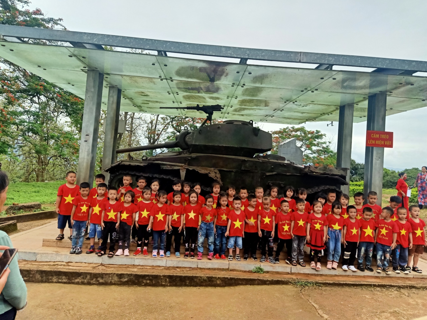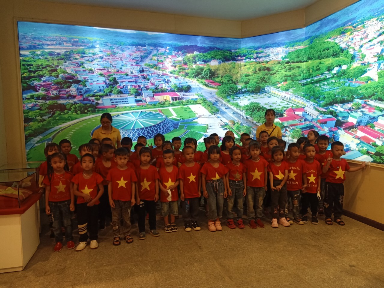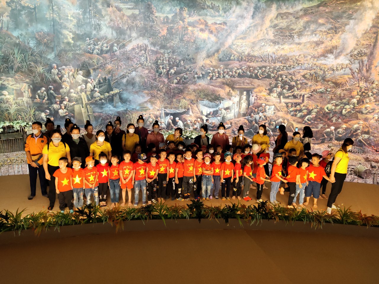 Tham gia chương trình trải nghiệm có...học sinh, cùng sự đồng hành, phối hợp của đông đảo các bậc phụ huynh nhà trường. Sau khi di chuyển từ Trường Mầm non Võ Nguyên Giáp, cách thành phố Điện Biên Phủ hơn 30km, sức khỏe của trẻ đều ổn định, trẻ vô cùng hào hứng, phấn khởi khi được tham gia chương trình. Điểm dừng chân đầu tiên của đoàn là Bảo tàng chiến thắng Điện Biên Phủ. Trong quá trình tham quan, trẻ xếp hàng ngay ngắn, nghiêm trang và trật tự lắng nghe hướng dẫn viên thuyết minh về nơi trưng bày các hiện vật lịch sử đồng thời được chiêm ngưỡng bức tranh Panorama lớn nhất thế giới tái hiện lại toàn bộ chiến dịch Điện Biên Phủ.