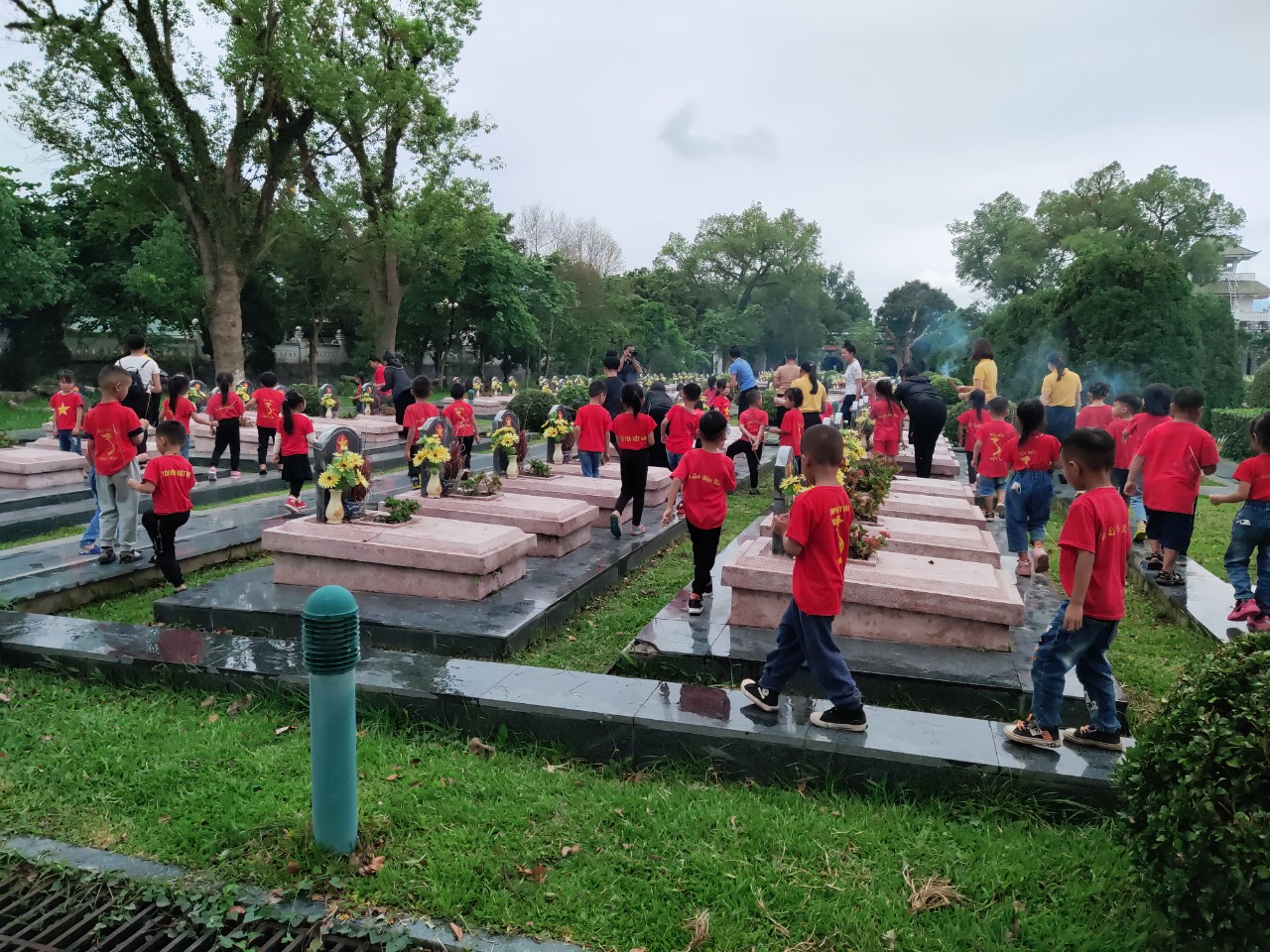 Tiếp đó trẻ được đến dâng hương, tưởng niệm các anh hùng liệt sĩ tại nghĩa trang liệt sĩ quốc gia A1 và thăm Đồi A1 lịch sử. Ngoài tham quan, giáo dục truyền thống trẻ còn được trải nghiệm một số kĩ năng giao tiếp như: Biết chào hỏi người lớn, khi đến thăm các khu di tích thì phải đi nhẹ nhàng, nói đủ nghe, không đùa nghịch, tuân theo quy tắc... Ngoài ra trẻ còn được giáo dục một số thói quen, hành vi như: không hái hoa, bẻ cành, không vứt rác ở nơi công cộng.