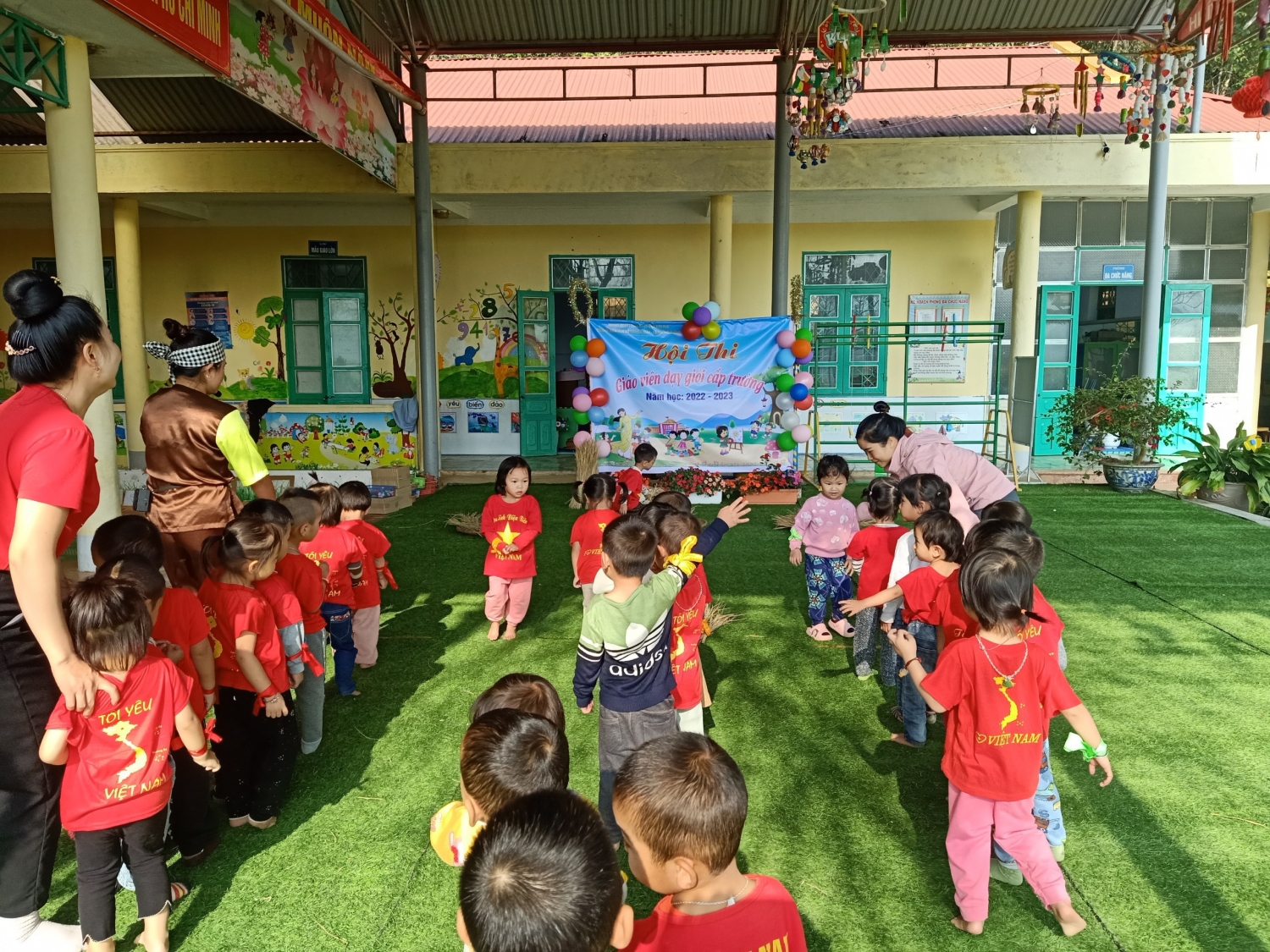 Hội thi Giáo viên dạy giỏi cấp trường là giải pháp hữu hiệu thực hiện mục tiêu nâng cao chất lượng nuôi dưỡng, chăm sóc, giáo dục trẻ đối với mỗi nhà trường. Năm học 2022-2023, Trường Mầm non Võ Nguyên Giáp xã Mường Phăng đã tổ chức hội thi giáo viên giỏi cấp trường được tổ chức vào cuối tháng 10, đầu tháng 11 năm 2022.Hội thi được tiến hành từ ngày 24/10 đến hết ngày 10/11/2022 với tổng số 12/12 giáo viên tham gia với nội dung: mỗi giáo viên thực hiện một bài thuyết trình về phương pháp, biện pháp dạy học và một tiết dạy về các đề tài, độ tuổi và lĩnh vực (đi sâu vào các chuyên đề chính được thực hiện trong năm học) . Ban giám khảo hội thi đã làm việc một cách công bằng, vô tư, giáo viên dự thi đã tham gia thi một cách nghiêm túc theo đúng quy chế và quy định hội thi đã ban hành.Thông qua Hội thi giáo viên nắm chắc hơn về nội dung, hình thức, phương pháp tổ chức các hoạt giáo dục theo quan điểm "Giáo dục lấy trẻ làm trung tâm" đảm bảo nhu cầu, hứng thú, khả năng của cá nhân trẻ và mỗi trẻ đều có các cơ hội để học, chơi bằng nhiều cách khác nhau theo phương châm "học bằng chơi, chơi mà học". Cũng thông qua Hội thi này Ban Giám Hiệu nhà trường nhận thấy được điểm mạnh, điểm yếu của từng giáo viên; các nội dung, các chuyên đề cần được bồi dưỡng để từ đó xây dựng kế hoạch chuyên môn của nhà trường ngày càng phù hợp và hiệu quả hơn.Hội thi giáo viên dạy giỏi cấp trường năm học 2022- 2023 đã thành công tốt đẹp, Giáo viên tham gia dự thi đã thể hiện sự cố gắng và quyết tâm cao, thể hiện được tài năng sư phạm, trình độ chuyên môn, sáng tạo, tự tin trong giảng dạy, đam mê nghề nghiệp, không ngừng phấn đấu để nâng cao chuyên môn, tay nghề. Với thành tích đã đạt được ấy chính là sự động viên, khích lệ, cổ vũ to lớn cho mỗi cán bộ, giáo viên trường mầm non Võ Nguyên Giáp có thêm nhiều động lực để phấn đấu rèn luyện chuyên môn, ngày càng gắn bó, nhiệt huyết với nghề, với trẻ để giúp cho nhà trường luôn xứng đáng là nơi gửi trao yêu thương của các bậc phụ huynh.