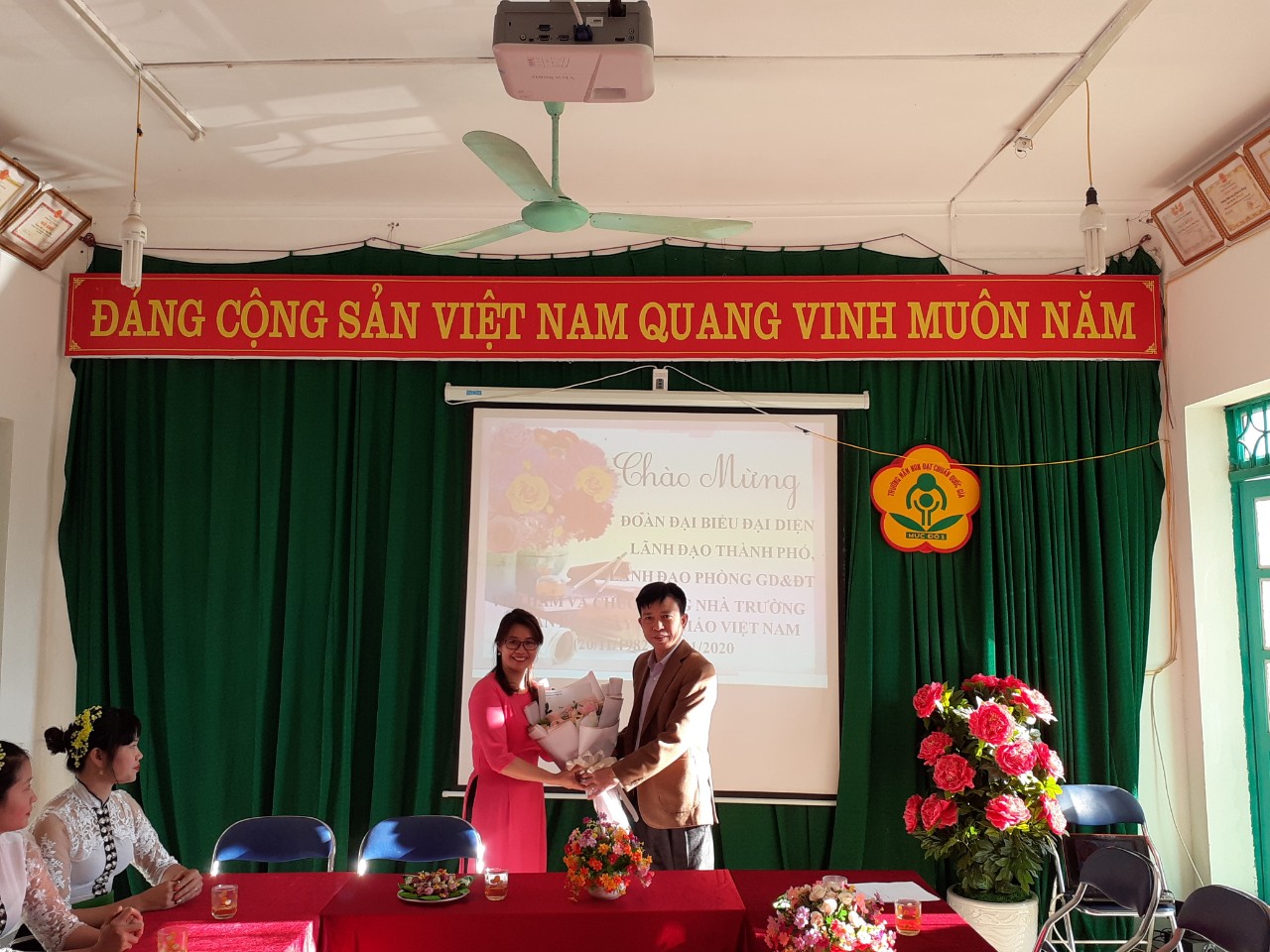 Ảnh đại biểu tặng hoa cho nhà trường