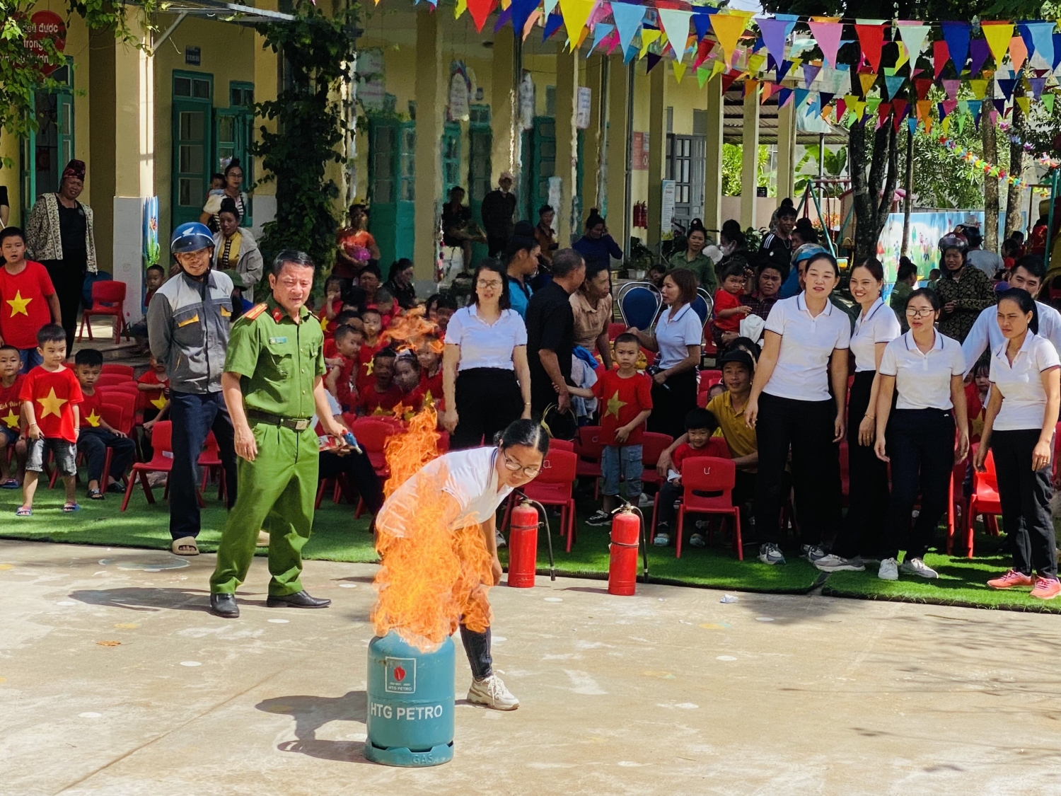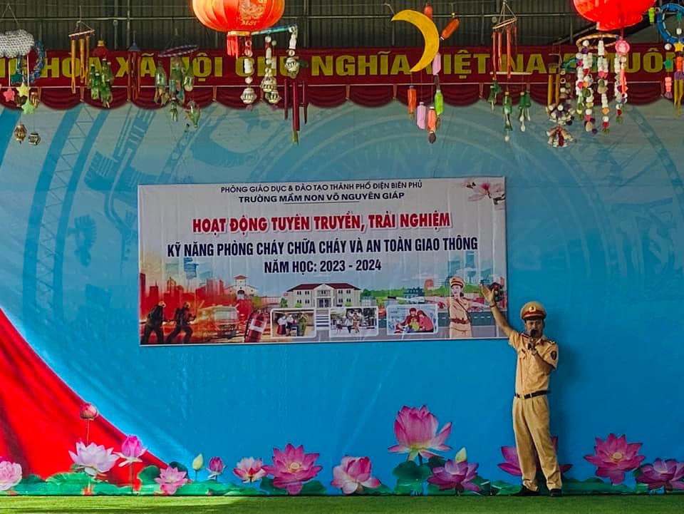 Ngày 22/9, Trường Mầm non Võ Nguyên Giáp, xã Mường Phăng, thành phố Điện Biên Phủ tổ chức hoạt động tuyên truyền, trải nghiệm kỹ năng PCCC và đảm bảo ATGT cho hơn 350 cán bộ, giáo viên, nhân viên, học sinh và phụ huynh của nhà trường.