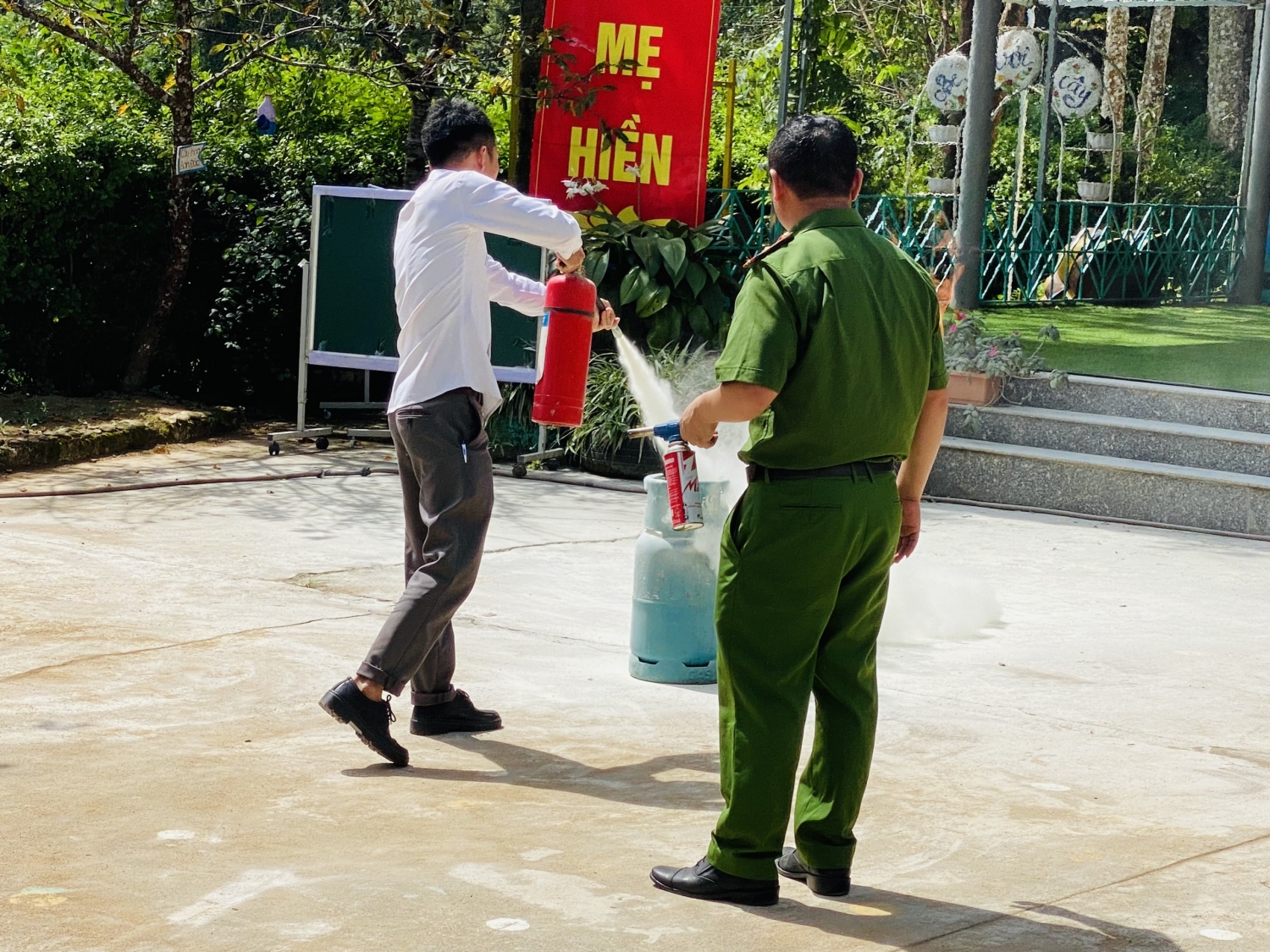 Tại hoạt động truyên truyền, trải nghiệm, cán bộ, chiến sĩ Đội Cảnh sát Giao thông – Trật tự, Công an thành phố và Phòng Cảnh sát PCCC-CNCH Công an tỉnh đã cung cấp những kiến thức, kỹ năng cơ bản trong phòng ngừa sự cố cháy nổ, cách thoát hiểm khi có cháy nổ xảy ra và các quy định khi tham gia giao thông, tránh tình trạng ách tắc giao thông xảy ra tại khu vực cổng trường.
