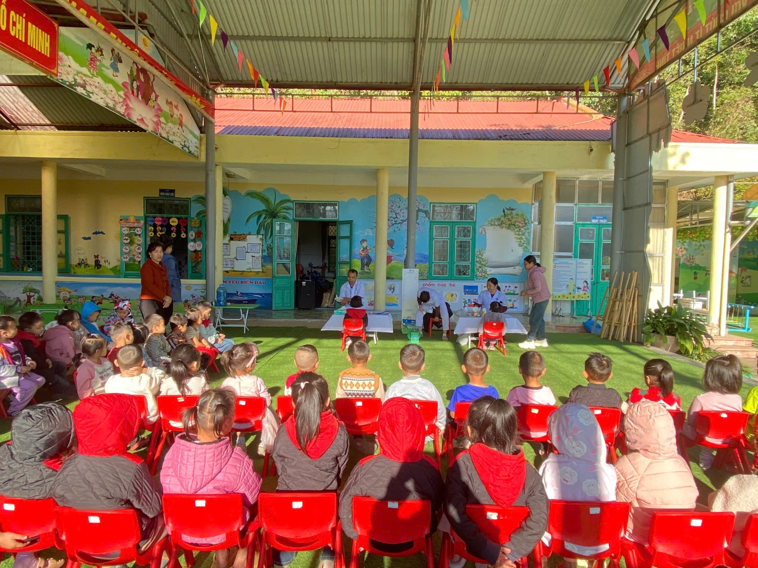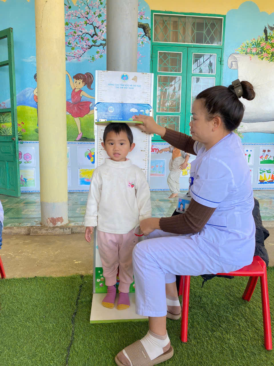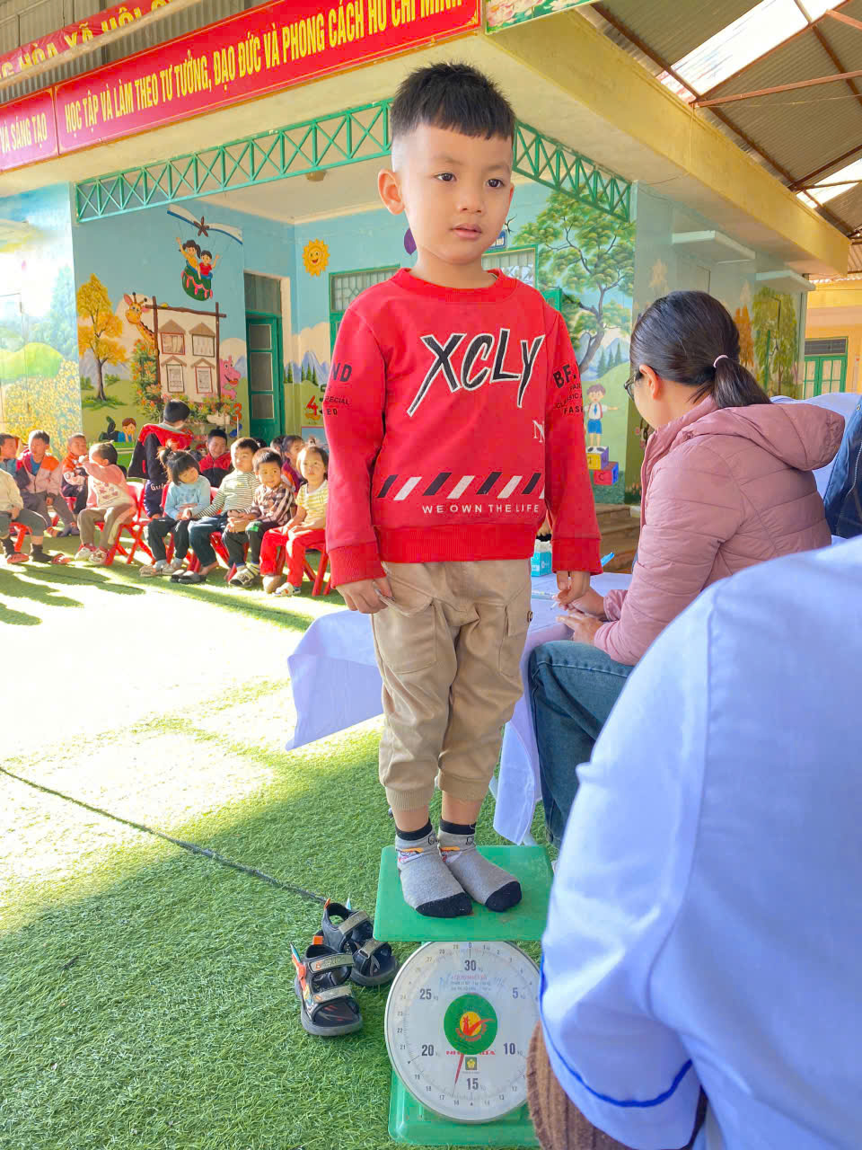 Nhằm nâng cao sức khỏe và phòng chống suy dinh dưỡng ở trẻ em, sáng ngày 03 tháng 12 năm 2024, Trường Mầm non Võ Nguyên Giáp xã Mường Phăng phối hợp với Trạm y tế xã Mường Phăng tổ chức cân đo, khám sức khoẻ định kỳ, kết hợp cho trẻ uống Vitamin A và thuốc tẩy giun.