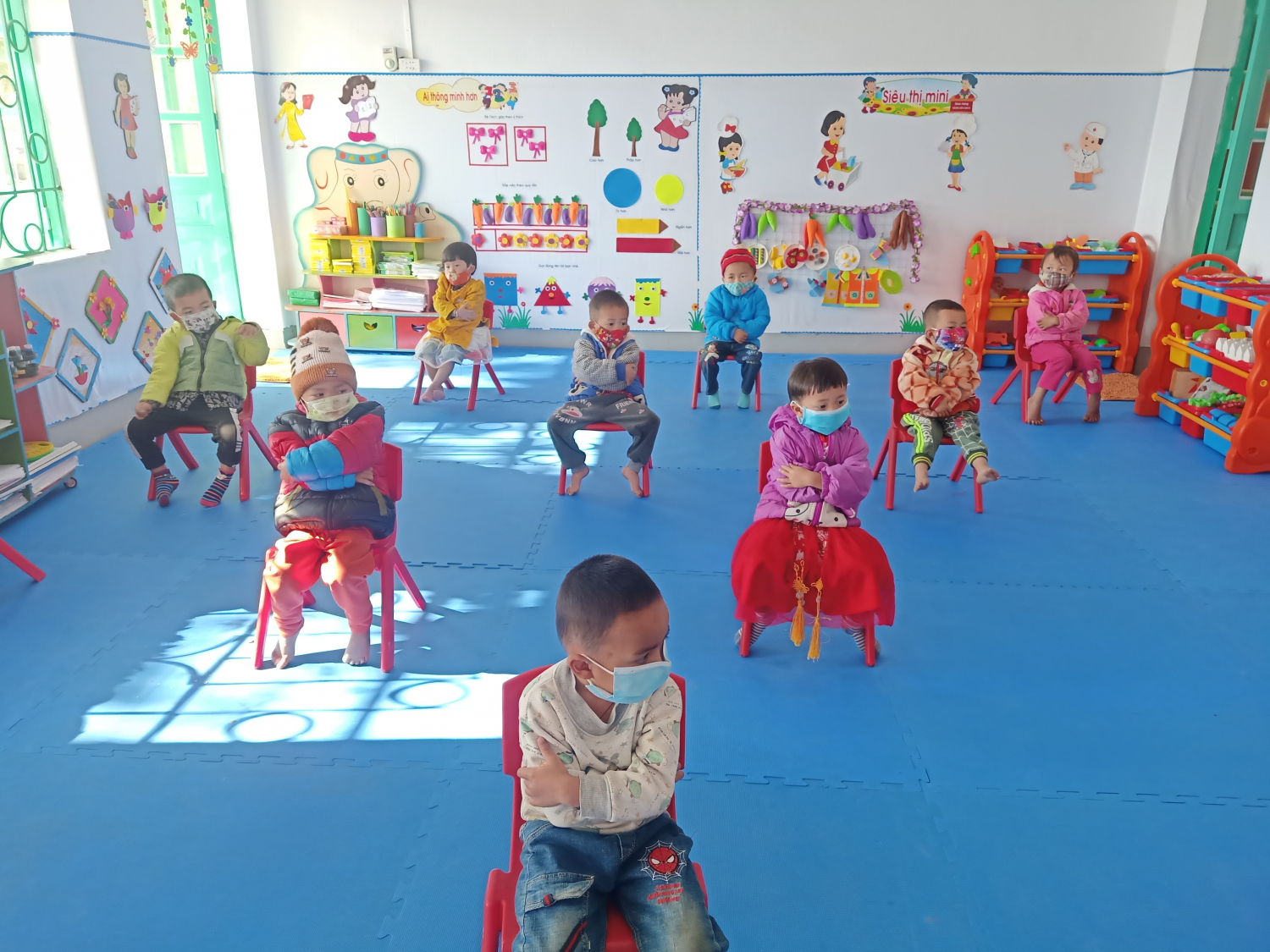 Ngay từ đầu giờ sáng,  Ban Giám hiệu cùng giáo viên nhà trường đã triển khai các phương án đo thân nhiệt và hướng dẫn vệ sinh tay cho các em, yêu cầu các bậc cha mẹ học sinh dừng tại cổng, không vào trong khuôn viên trường học.   Nhà trường cũng quán triệt cho cán bộ, giáo viên thường xuyên hướng dẫn học sinh cách rửa tay 6 bước, kiểm tra sức khỏe, lau nền nhà, tay nắm cửa, đồ chơi, dụng cụ học tập và các đồ vật trong phòng học, phòng chức năng bằng các chất tẩy rửa thông thường như xà phòng hoặc các dung dịch khử khuẩn khác.