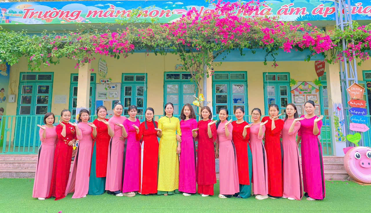 Ngày Quốc tế phụ nữ 8/3 là ngày để tôn vinh vẻ đẹp của người phụ nữ Việt Nam và cũng chính là dịp để chúng ta bày tỏ lòng biết ơn, thể hiện tình yêu thương của mình với các bà, các mẹ, các cô giáo. Trường Mầm non Võ Nguyên Giáp lại rộn ràng với những hoạt động sôi nổi của cô và trò để chào mừng ngày kỉ niệm ngày Quốc tế phụ nữ 8-3 với các hoạt động như các cô giáo cùng trẻ biểu diễn văn nghệ…, dạy trẻ cắm hoa, làm bưu thiếp, làm tranh tặng cô giáo, tặng bà và mẹ...Các hoạt động này được các con hưởng ứng nhiệt tình và hào hứng. Các con được tự tay mình làm những món quà để tặng bà, tặng mẹ, tặng cô giáo của mình và mang đến lớp những nguyên vật liệu để cùng cô làm tranh, làm thiệp cho hoạt động 8/3. Để tỏ lòng biết ơn tới những người phụ nữ trong gia đình yêu thương. Các con đã tự tay trang trí những tấm thiệp đầy màu sắc, làm những bông hoa thật đẹp để gửi gắm tình yêu, lòng biết ơn và tình cảm dành tặng bà, tặng mẹ của mình nhân ngày Quốc tế Phụ nữ 8/3 hòa trong không khí vui tươi, phấn khởi đó tập thể Cán bộ, giáo viên, nhân viên trường mầm non Võ Nguyên Giáp đã tổ chức tuần lễ áo dài được các cô hưởng ứng rất nhiệt tình mang đến một màu sắc tươi vui, mới mẻ cho tuần dạy học và cùng nhau ôn lại lịch sử ngày Quốc tế phụ nữ 8/3 trong buổi tọa đàm đầy ý nghĩa.
