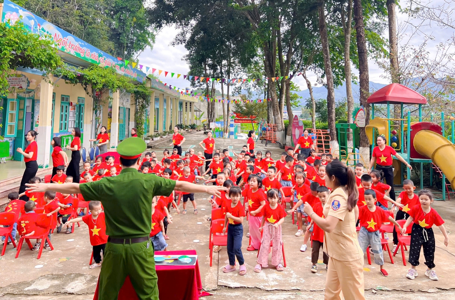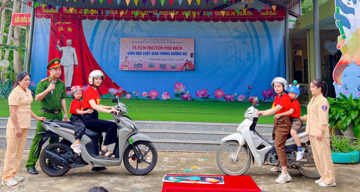 Thực hiện nhiệm vụ năm học 2024-2025 và tháng cao điểm an toàn giao thông với chủ đề “Tháng an toàn giao thông cho trẻ em đến trường”, ngày 23/9 trường Mầm non Võ Nguyên Giáp xã Mường Phăng kết hợp với công an xã Mường Phăng tổ chức Tuyên truyền Luật giao thông đường bộ cho gần 200 cán bộ, giáo viên, nhân viên và học sinh nhà trường.
