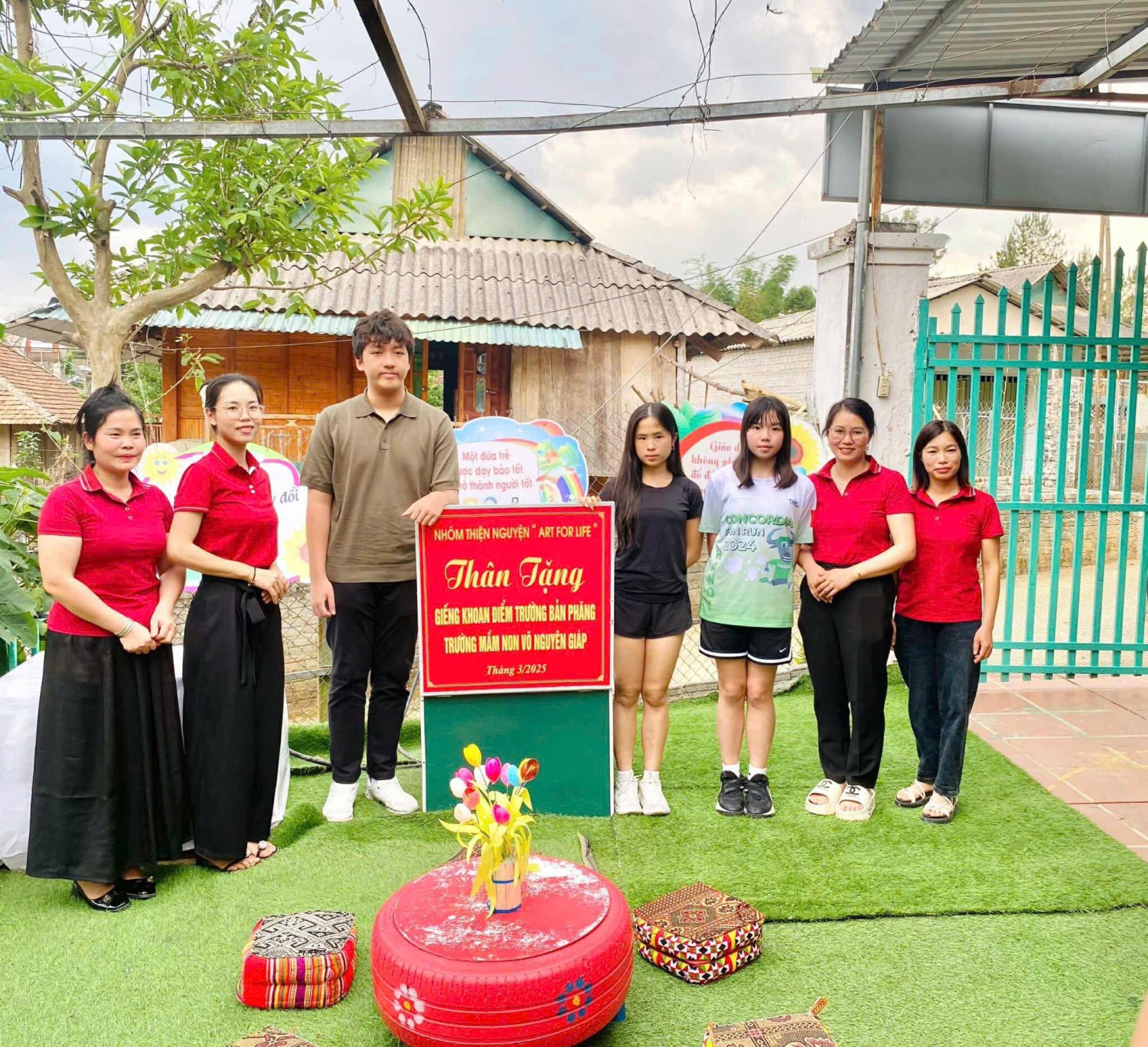 Chiều ngày 19/4/2025 trường Mầm non Võ Nguyên Giáp xã Mường Phăng đón đoàn thiện nguyện “Art for Life” và các em học sinh Ngô Thục Anh (Ella) Nguyễn Đức Thạch Lâm, Hoàng Tuệ Doanh từ trường Concordia Internationnai School Hanoi trao giếng khoan cho điểm trường Bản Phăng.