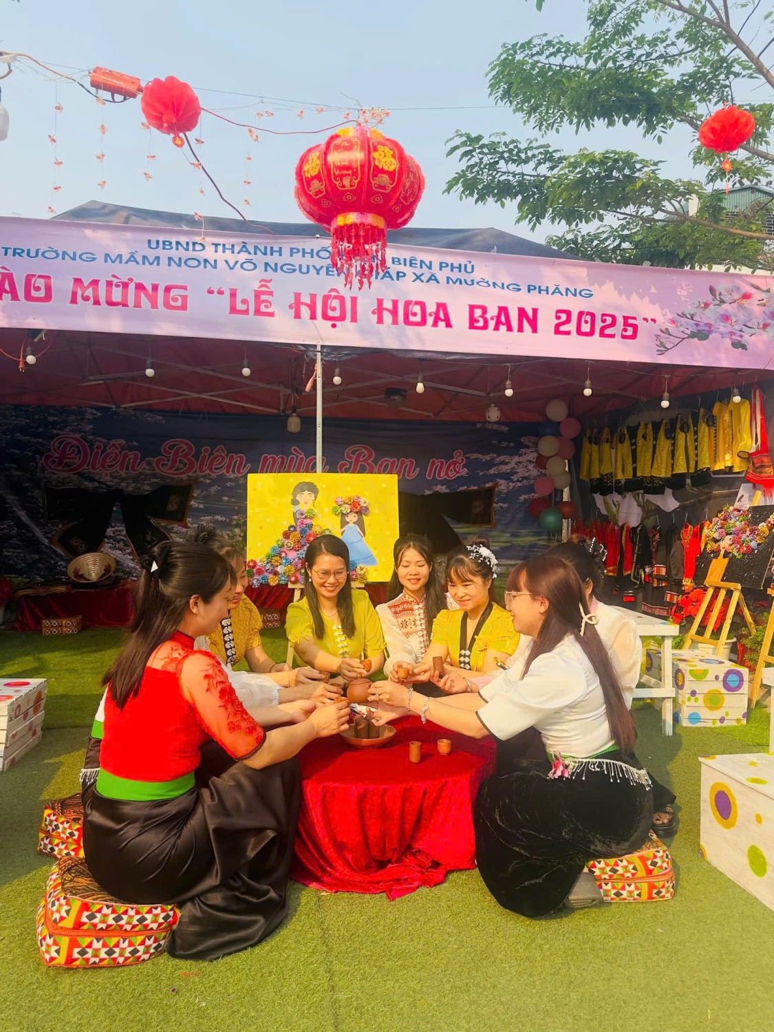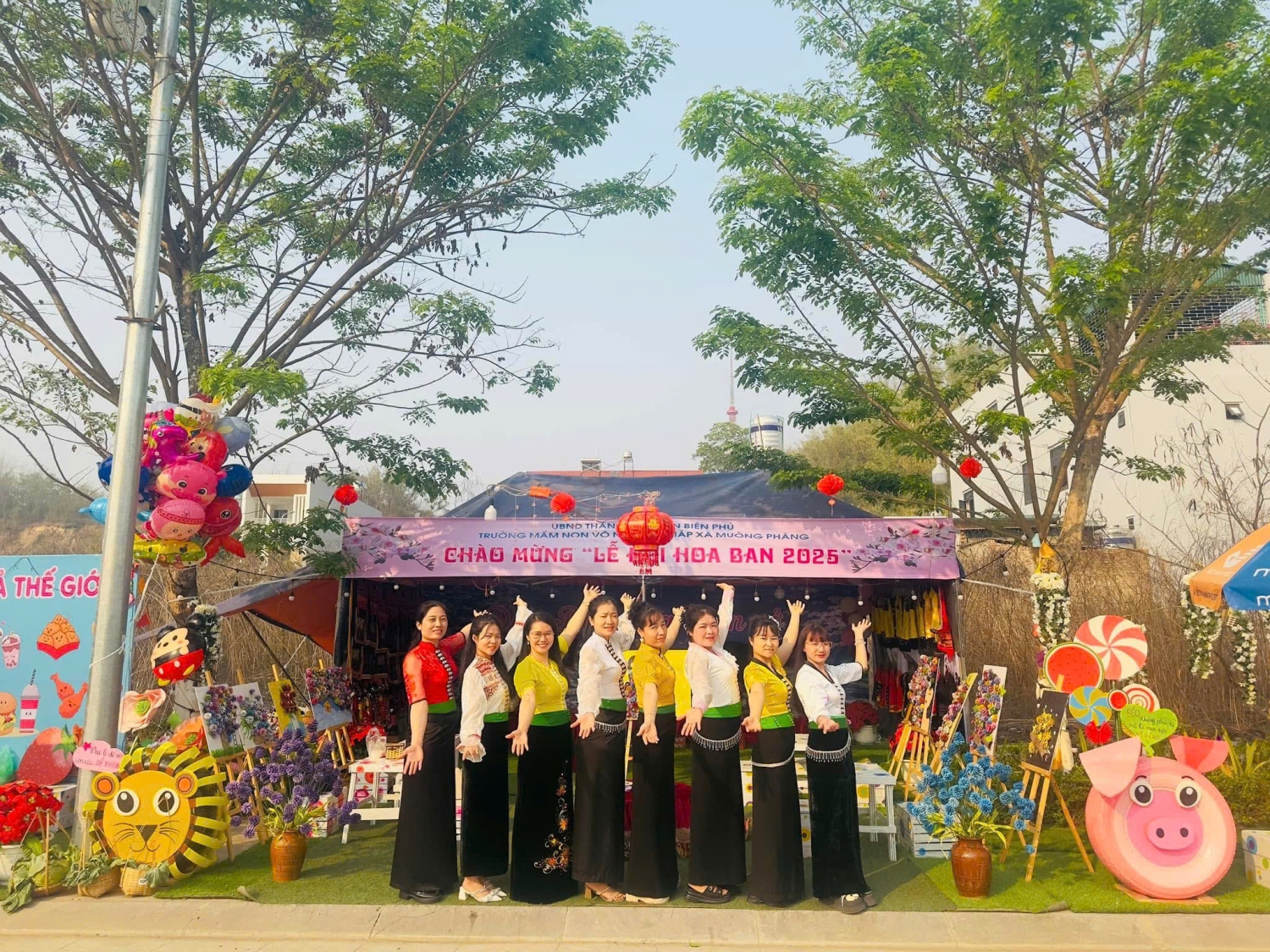 Hòa chung với không khí “Lễ hội Hoa Ban năn 2025”, tập thể Cán bộ giáo viên, nhân viên trường Mầm non Võ Nguyên Giáp xã Mường Phăng đã tích cực tham gia nhiều hoạt động như tuyên truyền về Lễ hội tới phụ huynh và cộng đồng trên các nền tảng mạng xã hội Zalo, Facebook…nhằm tôn vinh vẻ đẹp của loài hoa đặc trưng vùng Tây Bắc và quảng bá du lịch, văn hóa của các dân tộc đang sinh sống trên mảnh đất Điện Biên lịch sử bên cạnh đó nhà trường còn tham gia dựng trại, thiết kế gian hàng tại đường 7/5 để trưng bày những bộ trang phục, đồ dùng của dân tộc Thái, Mông…, giao lưu văn nghệ nhảy sạp, múa xòe... tạo không khí vui tươi, góp phần quảng bá nét dẹp văn hóa truyền thống của quê hương Điện Biên.