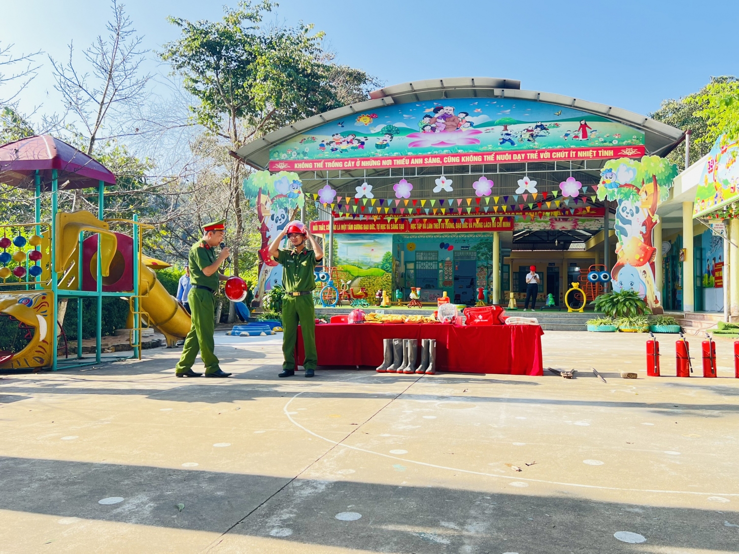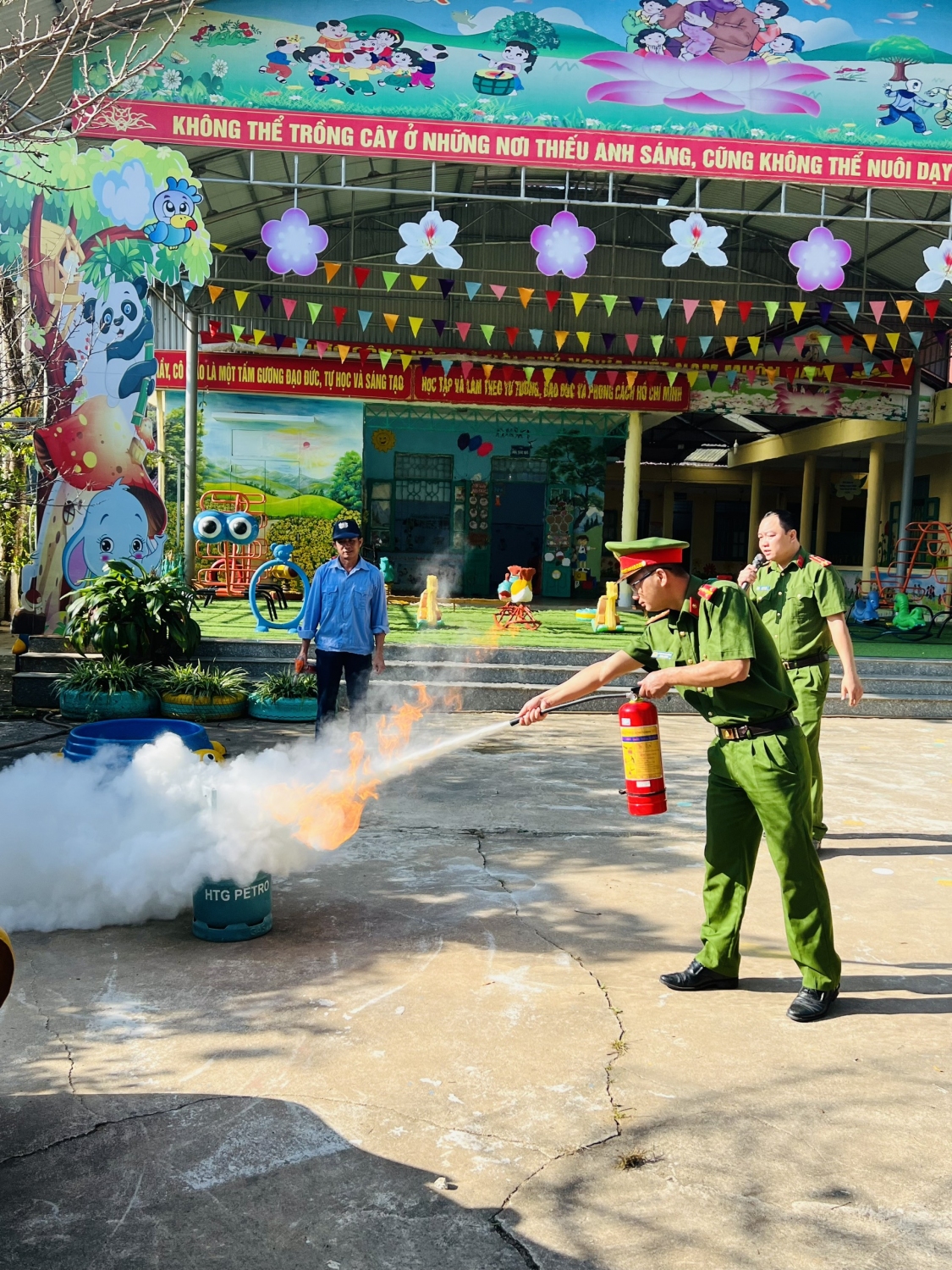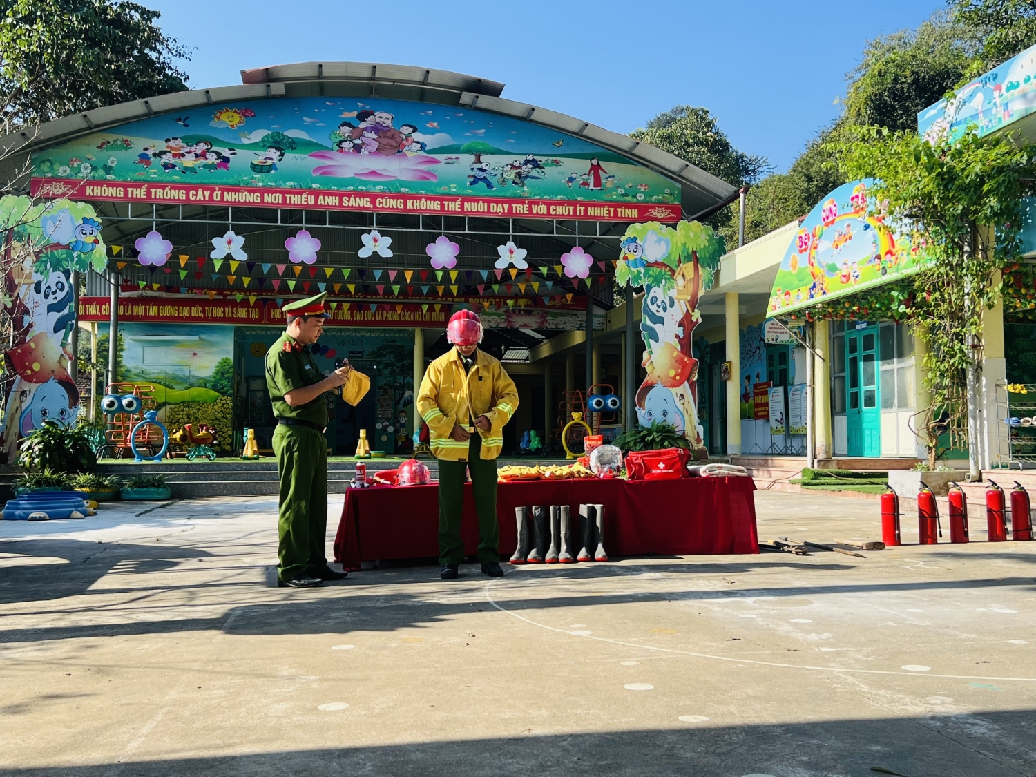 Tại buổi tuyên truyền, cán bộ, giáo viên, nhân viên và học sinh nhà trường đã được lực lượng Công an xã tuyên truyền, giới thiệu và phổ biến các kiến thức cơ bản, thiết thực về phòng cháy chữa cháy; được xem, tìm hiểu các phương tiện, trang thiết bị, dụng cụ tham gia phòng cháy chữa cháy như: bình xịt chữa cháy, mũ bảo hiểm, quần áo bảo hộ, mặt nạ chống độc...