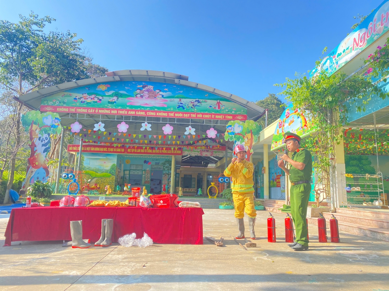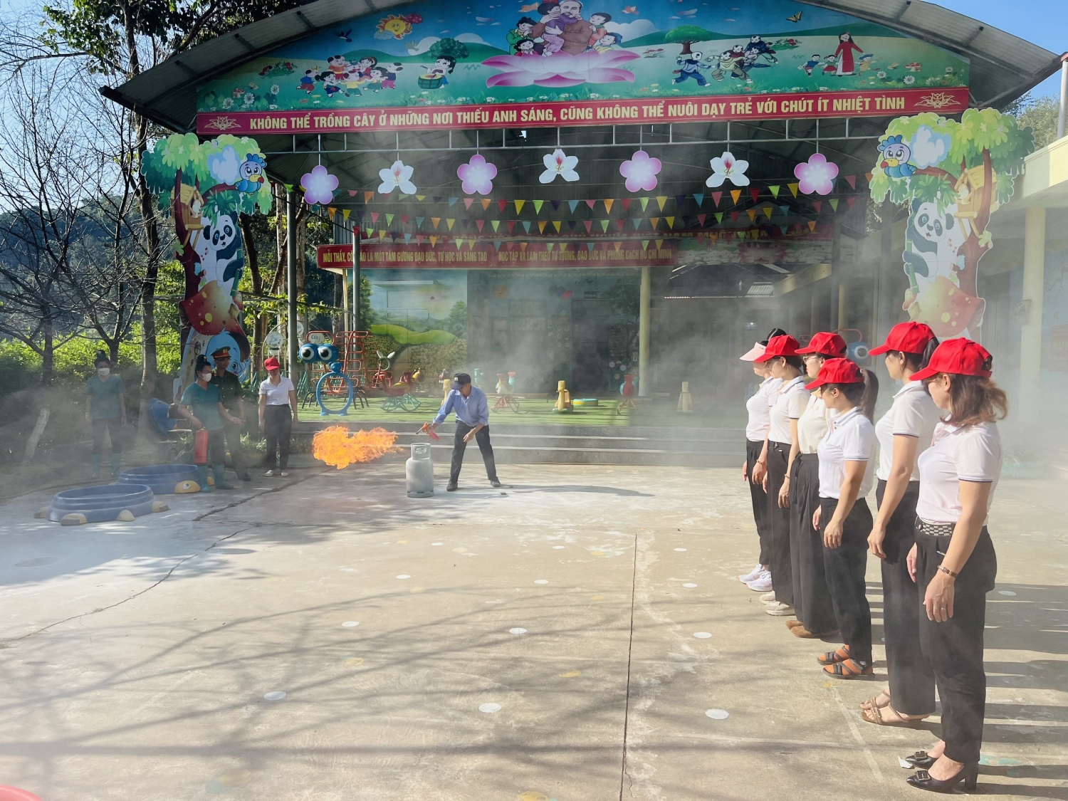 TRƯỜNG MẦM NON VÕ NGUYÊN GIÁP XÃ MƯỜNG PHĂNG TỔ CHỨC HOẠT ĐỘNG TUYÊN TRUYỀN, TRẢI NGHIỆM KỸ NĂNG PHÒNG CHÁY CHỮA CHÁY