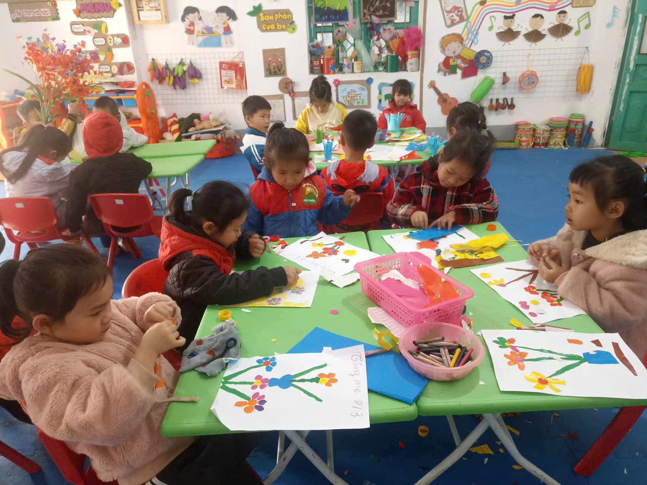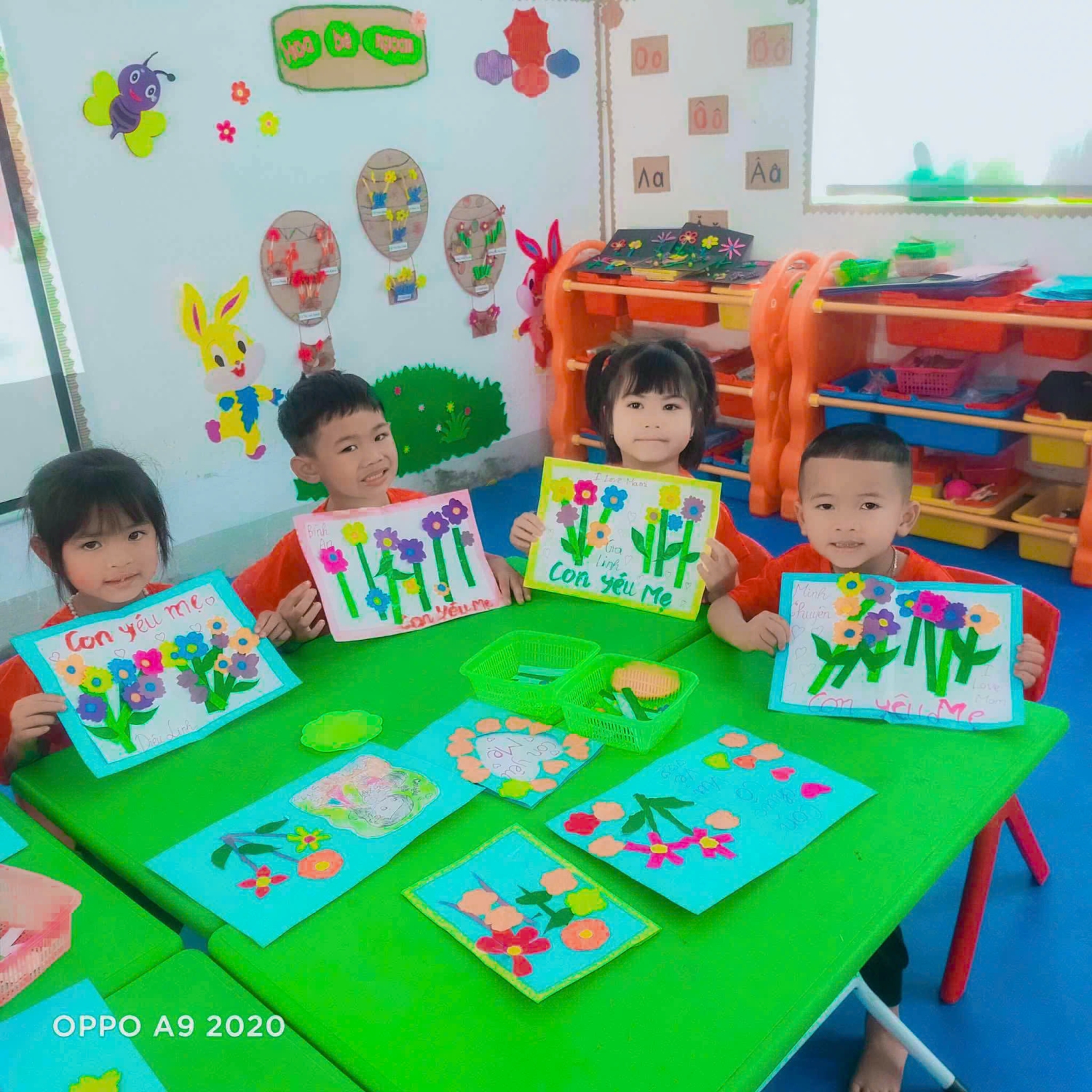 Để tỏ lòng biết ơn tới những người phụ nữ trong gia đình yêu thương. Các con đã tự tay trang trí những tấm thiệp đầy màu sắc, làm những bông hoa thật đẹp để gửi gắm tình yêu, lòng biết ơn và tình cảm dành tặng bà, tặng mẹ của mình nhận ngày Quốc tế Phụ nữ 8/3