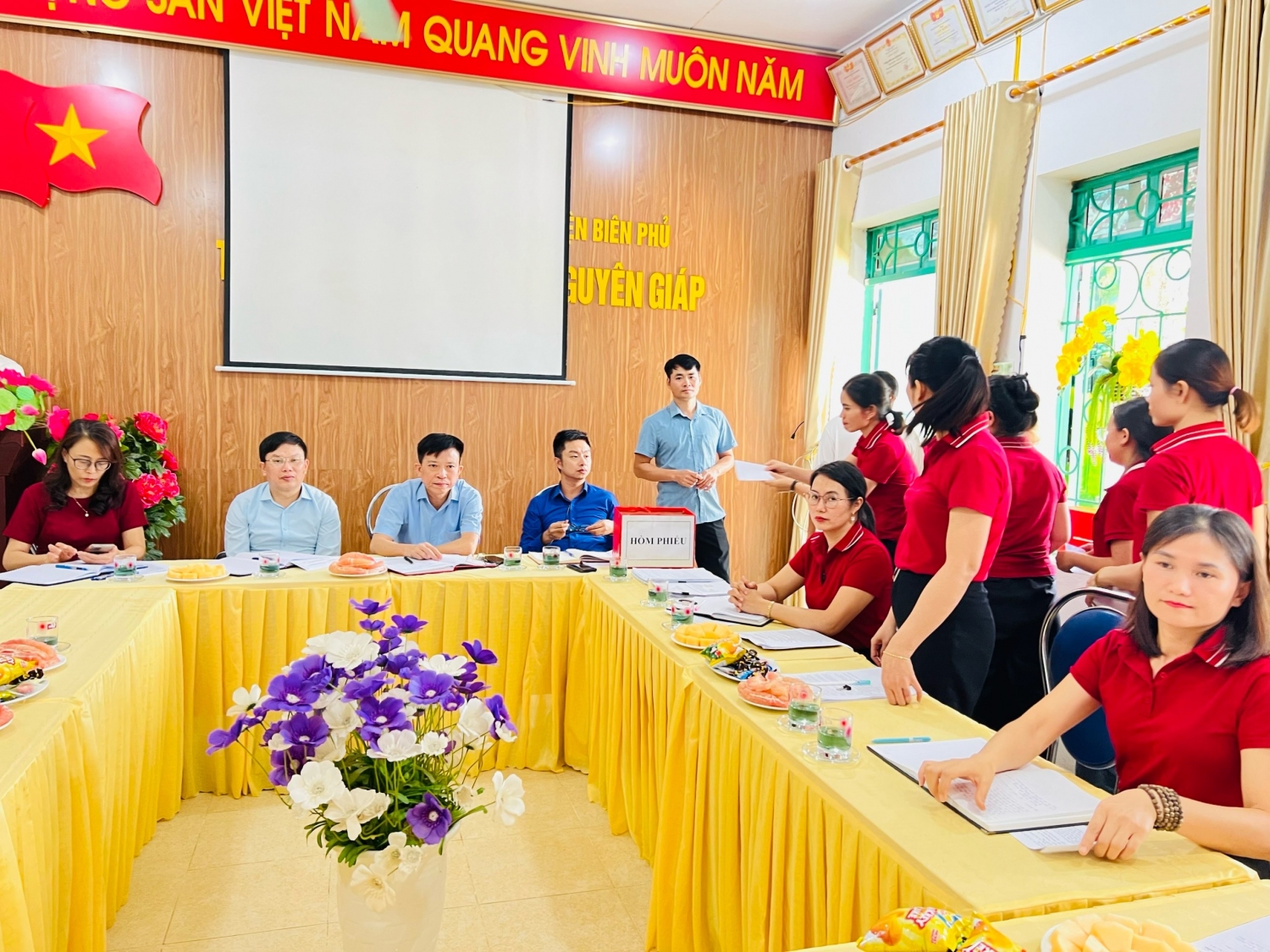 Chủ trì Hội nghị đã phân công Bà Đoàn Thị Bích – Phó hiệu trưởng của nhà trường, đại diện phát phiếu, thu phiếu, đếm số lượng phiếu phát ra, số lượng phiếu thu vào để công bố trước Hội nghị, niêm phong số lượng phiếu thu vào gửi Chủ trì Hội nghị.