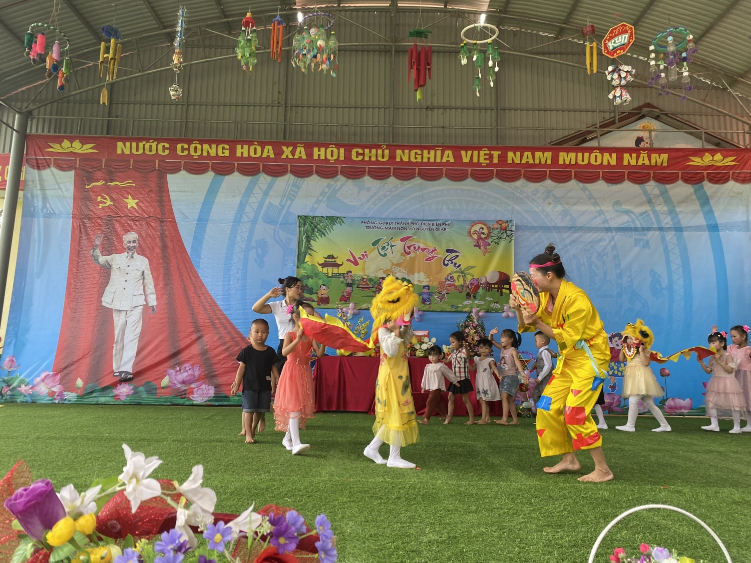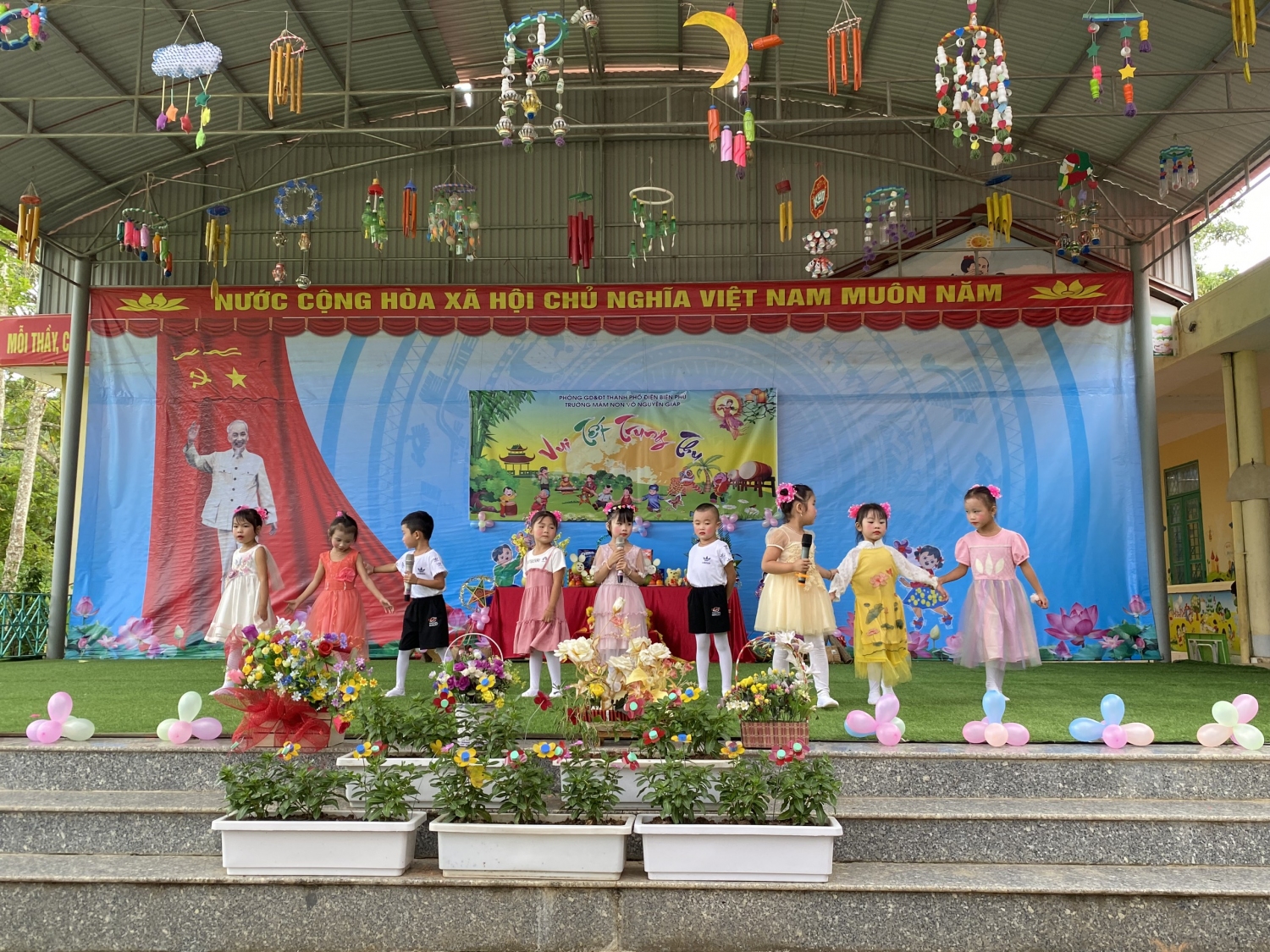 Hòa chung không khí rộn ràng của ngày Tết trung thu, chiều ngày (ngày 09/ 9/ 2022, tức ngày 15/8/2022 âm lịch) tại trường Mầm non Võ nguyên Giáp xã Mường Phăng, Nhà trường đã tổ chức chương trình " Vui tết trung thu" cho các em học sinh trong toàn trường.