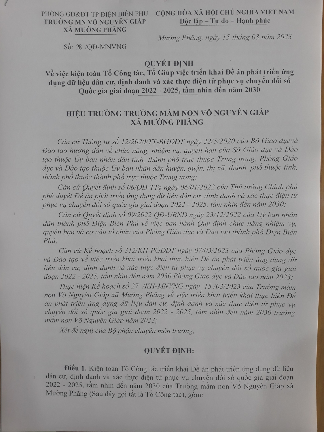 TRƯỜNG MẦM NON VÕ NGUYÊN GIÁP XÃ MƯỜNG PHĂNG ĐỒNG HÀNH CÙNG CHƯƠNG TRÌNH “ CÙNG VIỆT NAM TIẾN BƯỚC”.