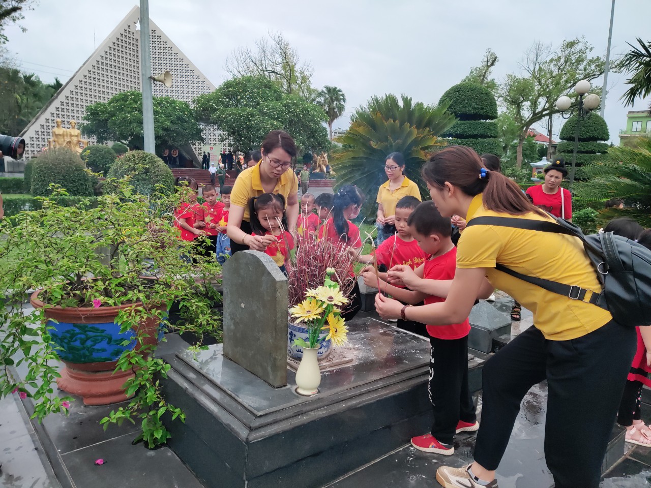 Tiếp đó trẻ được đến dâng hương, tưởng niệm các anh hùng liệt sĩ tại nghĩa trang liệt sĩ quốc gia A1 và thăm Đồi A1 lịch sử. Ngoài tham quan, giáo dục truyền thống trẻ còn được trải nghiệm một số kĩ năng giao tiếp như: Biết chào hỏi người lớn, khi đến thăm các khu di tích thì phải đi nhẹ nhàng, nói đủ nghe, không đùa nghịch, tuân theo quy tắc... Ngoài ra trẻ còn được giáo dục một số thói quen, hành vi như: không hái hoa, bẻ cành, không vứt rác ở nơi công cộng.