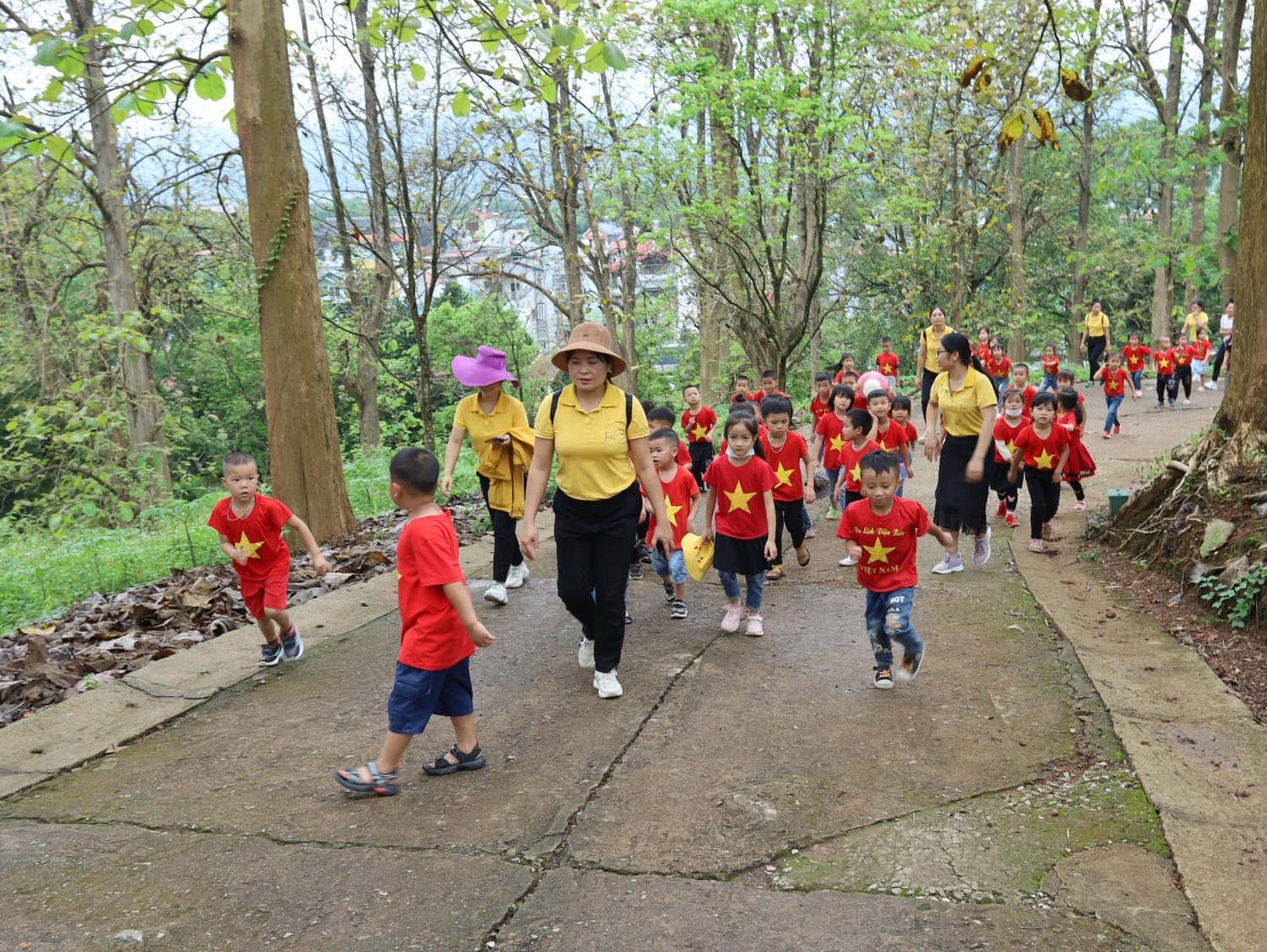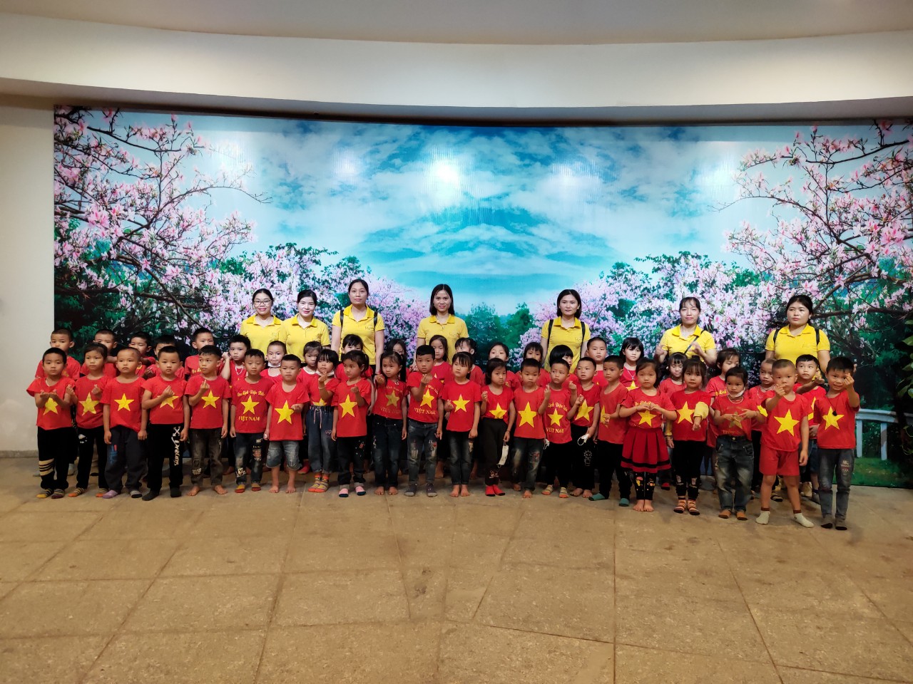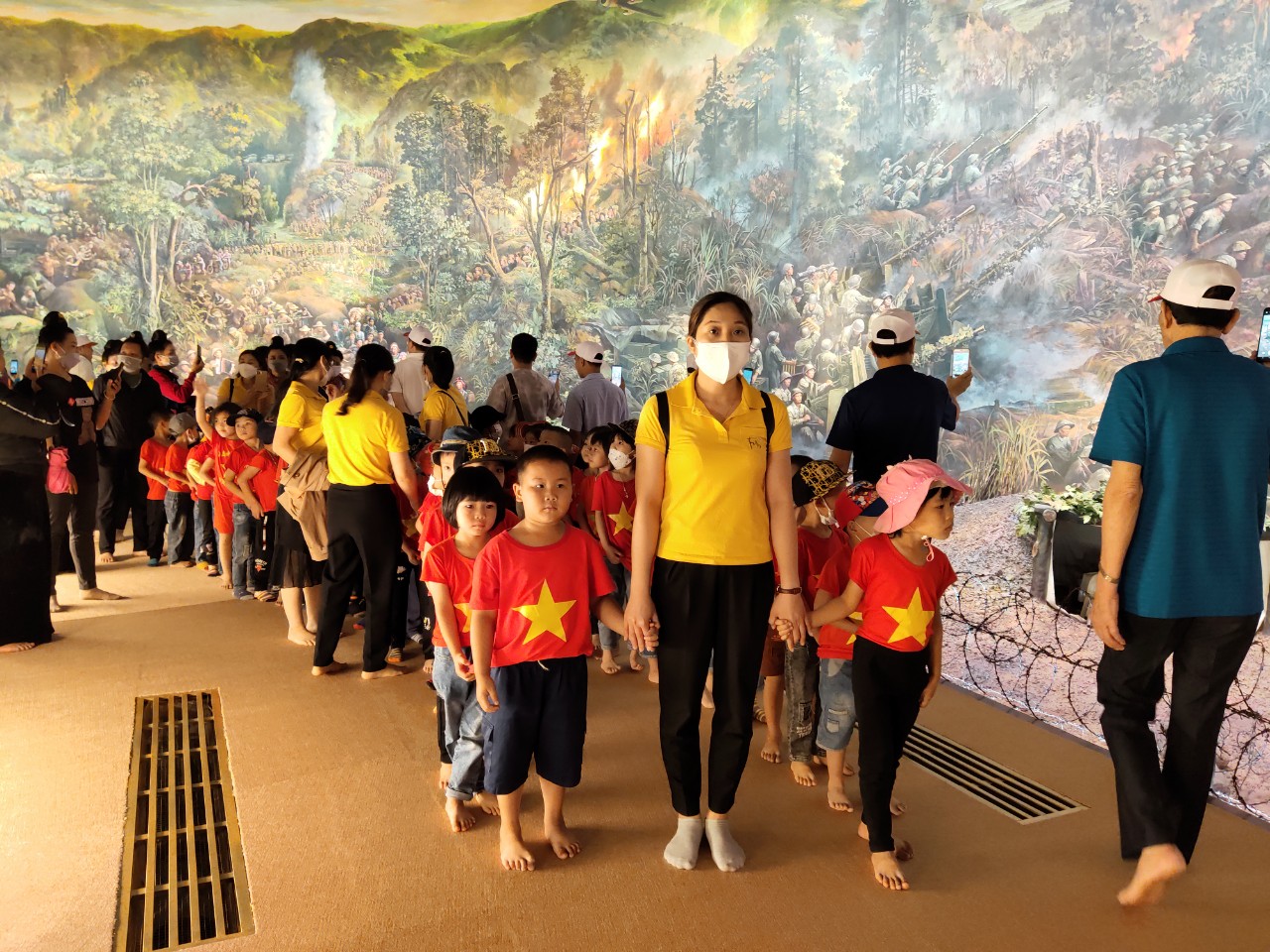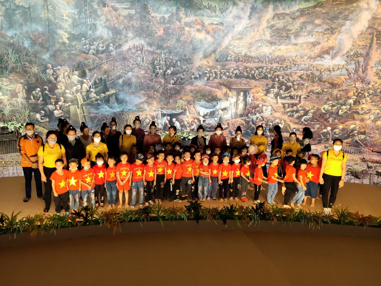 Tham gia chương trình trải nghiệm có...học sinh, cùng sự đồng hành, phối hợp của đông đảo các bậc phụ huynh nhà trường. Sau khi di chuyển từ Trường Mầm non Võ Nguyên Giáp, cách thành phố Điện Biên Phủ hơn 30km, sức khỏe của trẻ đều ổn định, trẻ vô cùng hào hứng, phấn khởi khi được tham gia chương trình. Điểm dừng chân đầu tiên của đoàn là Bảo tàng chiến thắng Điện Biên Phủ. Trong quá trình tham quan, trẻ xếp hàng ngay ngắn, nghiêm trang và trật tự lắng nghe hướng dẫn viên thuyết minh về nơi trưng bày các hiện vật lịch sử đồng thời được chiêm ngưỡng bức tranh Panorama lớn nhất thế giới tái hiện lại toàn bộ chiến dịch Điện Biên Phủ.