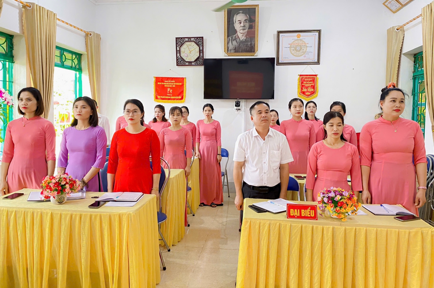 Điều hành Hội nghị là Đoàn chủ tịch gồm đồng chí Lý Kim Phượng – Bí thư Chi bộ - Hiệu trưởng, đồng chí Bùi Thị Hồng Nhung- Phó bí thư chi bộ- Phó Hiệu trưởng nhà trường, đồng chí Đoàn Thị Bích – Chủ tịch công đoàn, Thư kí Hội nghị 02 đồng chí Bùi Thị Vân và đồng chí Lò Hương Tiên ghi biên bản và nghị quyết hội nghị.