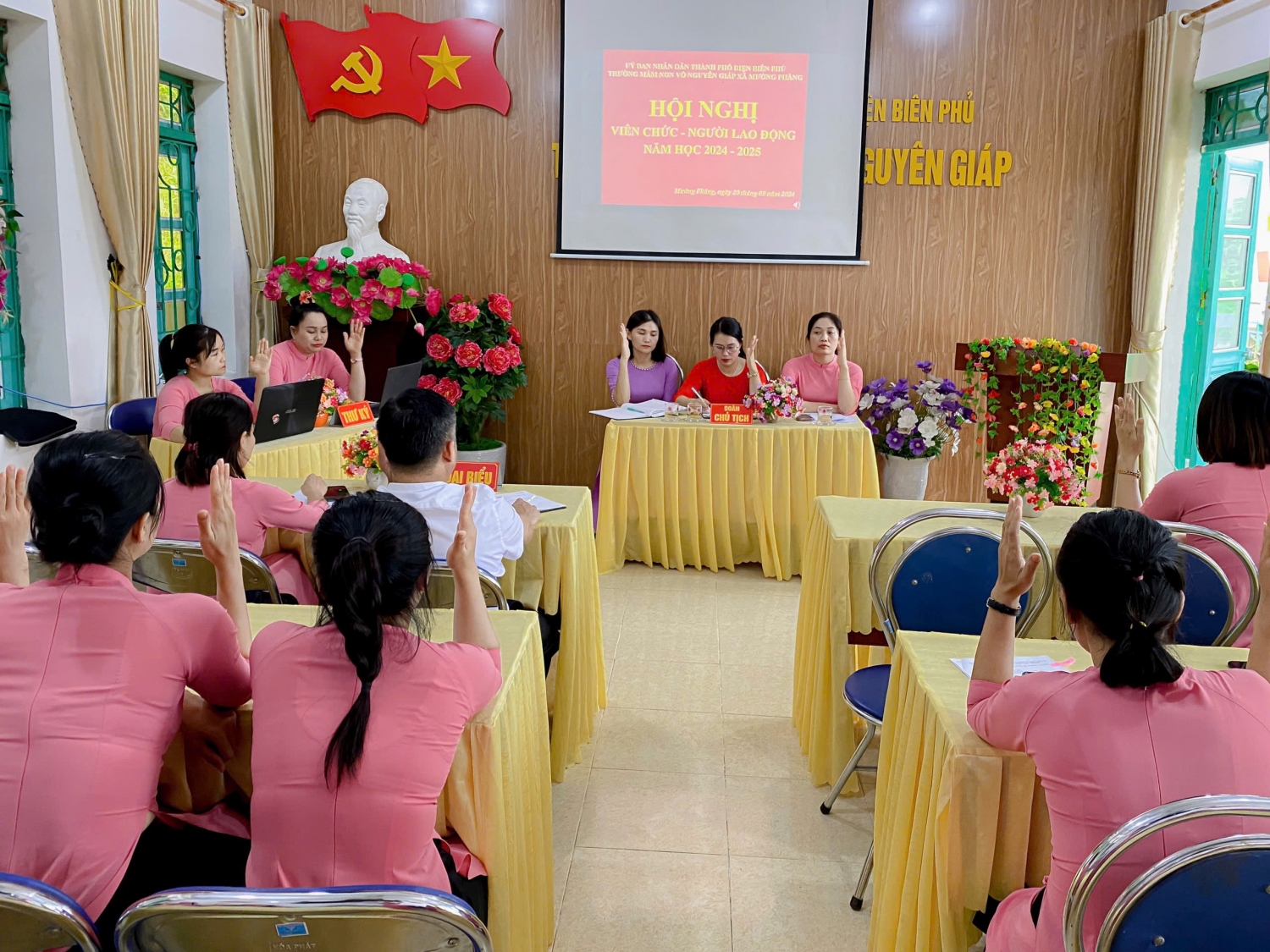 Chiều ngày ngày 20 tháng 09 năm 2024 trường Mầm non Võ Nguyên Giáp xã Mường Phăng long trọng tổ chức Hội nghị viên chức, người lao động năm học 2024-2025.