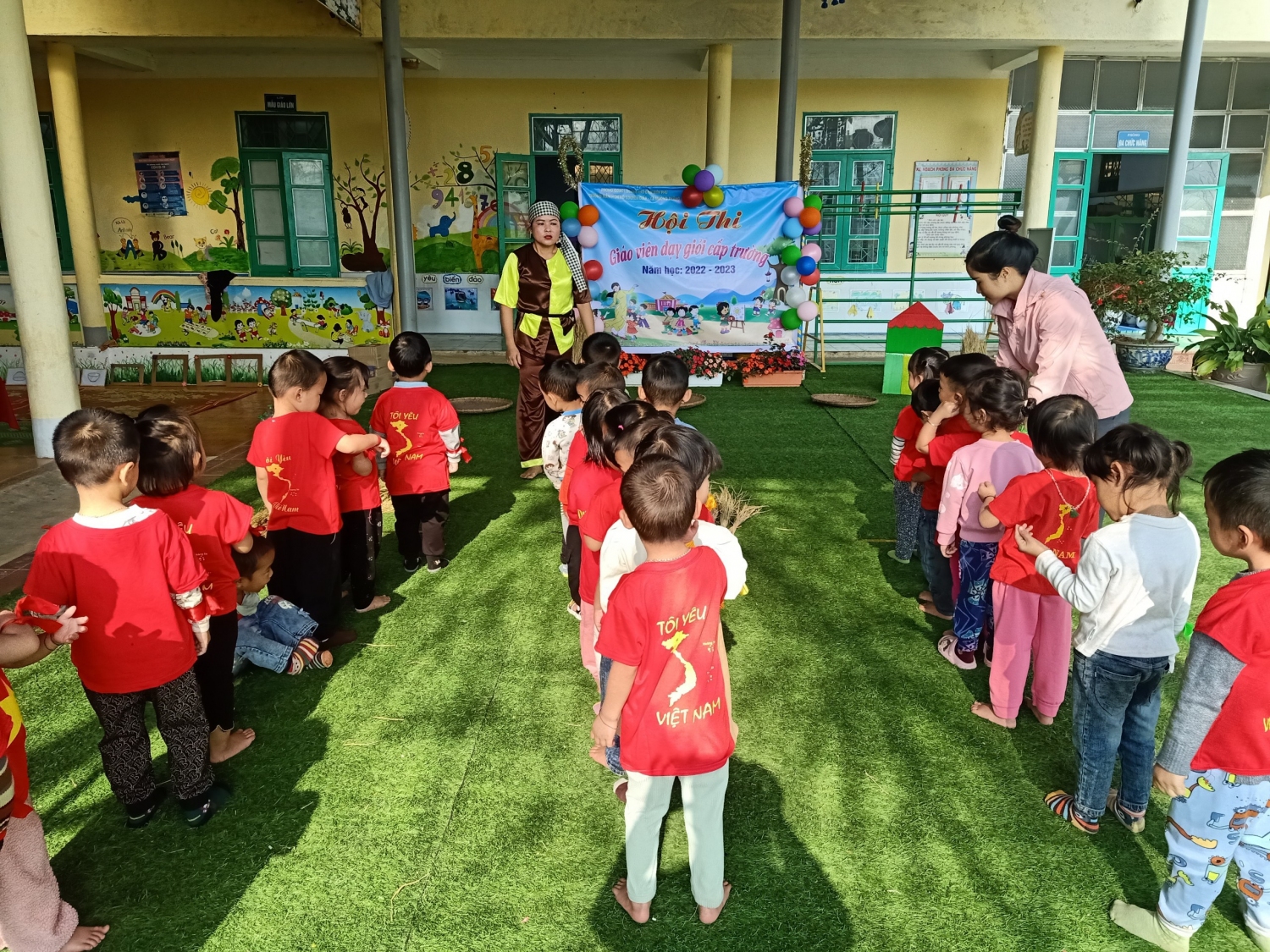 Hội thi Giáo viên dạy giỏi cấp trường là giải pháp hữu hiệu thực hiện mục tiêu nâng cao chất lượng nuôi dưỡng, chăm sóc, giáo dục trẻ đối với mỗi nhà trường. Năm học 2022-2023, Trường Mầm non Võ Nguyên Giáp xã Mường Phăng đã tổ chức hội thi giáo viên giỏi cấp trường được tổ chức vào cuối tháng 10, đầu tháng 11 năm 2022.Hội thi được tiến hành từ ngày 24/10 đến hết ngày 10/11/2022 với tổng số 12/12 giáo viên tham gia với nội dung: mỗi giáo viên thực hiện một bài thuyết trình về phương pháp, biện pháp dạy học và một tiết dạy về các đề tài, độ tuổi và lĩnh vực (đi sâu vào các chuyên đề chính được thực hiện trong năm học) . Ban giám khảo hội thi đã làm việc một cách công bằng, vô tư, giáo viên dự thi đã tham gia thi một cách nghiêm túc theo đúng quy chế và quy định hội thi đã ban hành.Thông qua Hội thi giáo viên nắm chắc hơn về nội dung, hình thức, phương pháp tổ chức các hoạt giáo dục theo quan điểm "Giáo dục lấy trẻ làm trung tâm" đảm bảo nhu cầu, hứng thú, khả năng của cá nhân trẻ và mỗi trẻ đều có các cơ hội để học, chơi bằng nhiều cách khác nhau theo phương châm "học bằng chơi, chơi mà học". Cũng thông qua Hội thi này Ban Giám Hiệu nhà trường nhận thấy được điểm mạnh, điểm yếu của từng giáo viên; các nội dung, các chuyên đề cần được bồi dưỡng để từ đó xây dựng kế hoạch chuyên môn của nhà trường ngày càng phù hợp và hiệu quả hơn.Hội thi giáo viên dạy giỏi cấp trường năm học 2022- 2023 đã thành công tốt đẹp, Giáo viên tham gia dự thi đã thể hiện sự cố gắng và quyết tâm cao, thể hiện được tài năng sư phạm, trình độ chuyên môn, sáng tạo, tự tin trong giảng dạy, đam mê nghề nghiệp, không ngừng phấn đấu để nâng cao chuyên môn, tay nghề. Với thành tích đã đạt được ấy chính là sự động viên, khích lệ, cổ vũ to lớn cho mỗi cán bộ, giáo viên trường mầm non Võ Nguyên Giáp có thêm nhiều động lực để phấn đấu rèn luyện chuyên môn, ngày càng gắn bó, nhiệt huyết với nghề, với trẻ để giúp cho nhà trường luôn xứng đáng là nơi gửi trao yêu thương của các bậc phụ huynh.