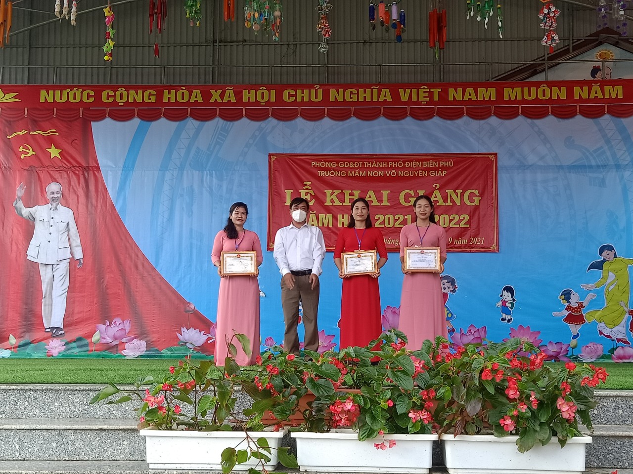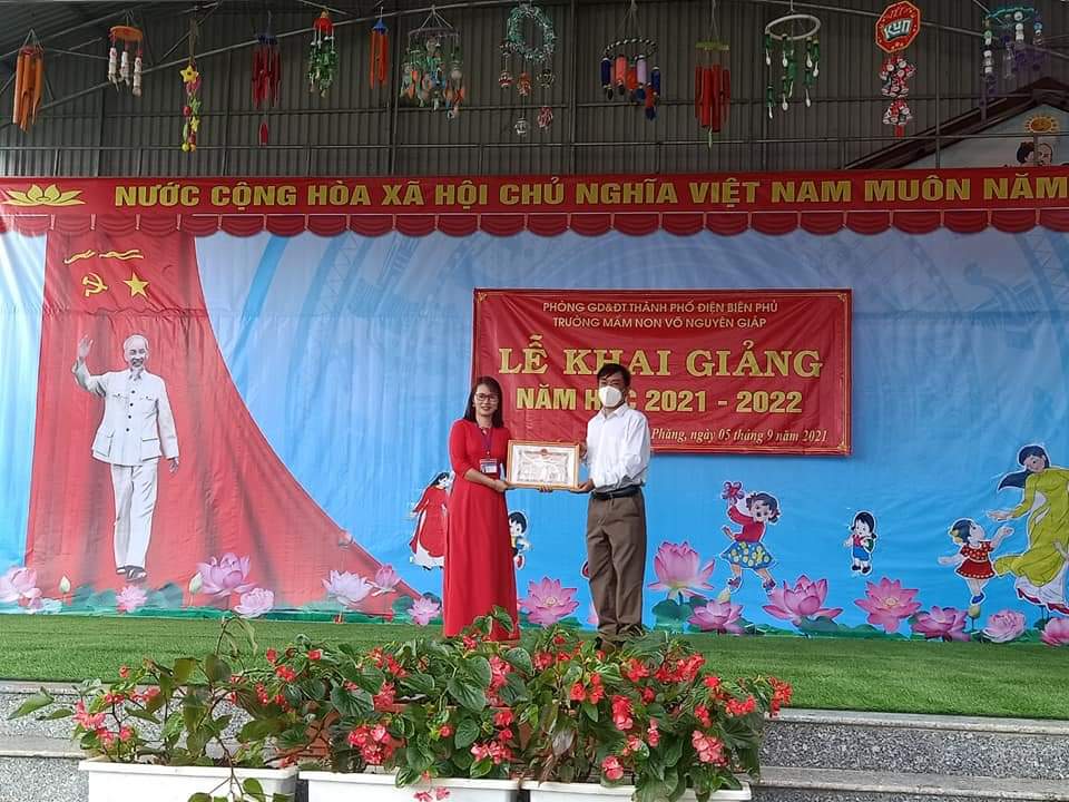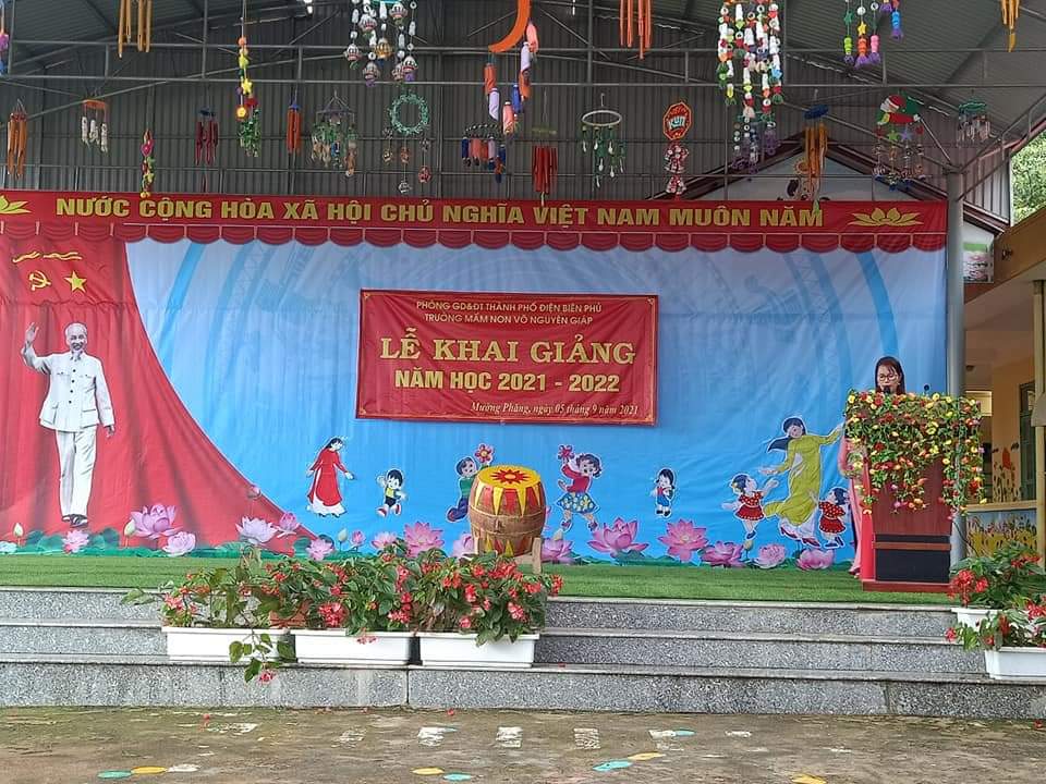 Sáng ngày 05/9/2021, hòa với niềm vui chung của hàng triệu học sinh trong cả nước, trường Mầm non Võ Nguyên Giáp long trọng tổ chức lễ khai giảng năm học mới. Các đồng chí lãnh đạo Phòng GD&ĐT Thành phố Điện Biên Phủ, lãnh đạo xã, các đơn vị đóng trên địa bàn đã đến tặng hoa và chúc mừng nhà trường nhân dịp khai giảng năm học mới.
