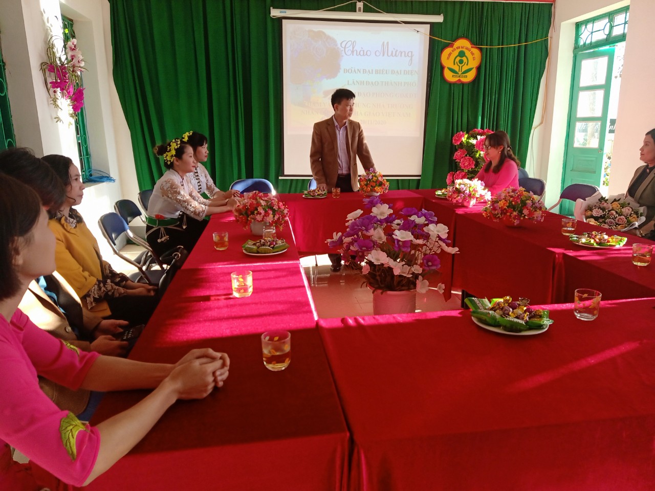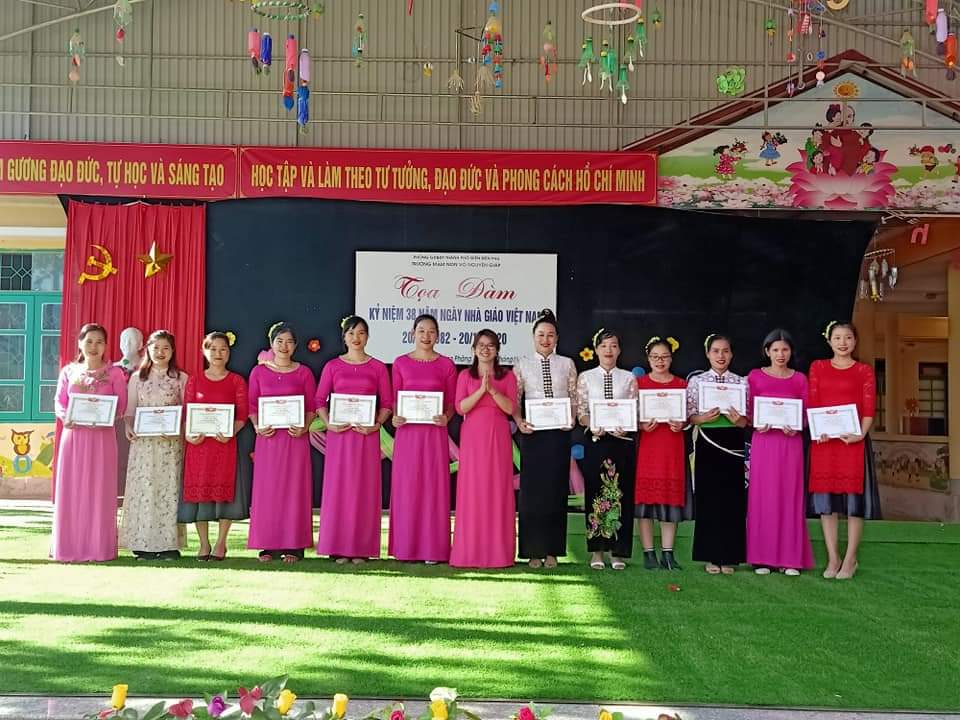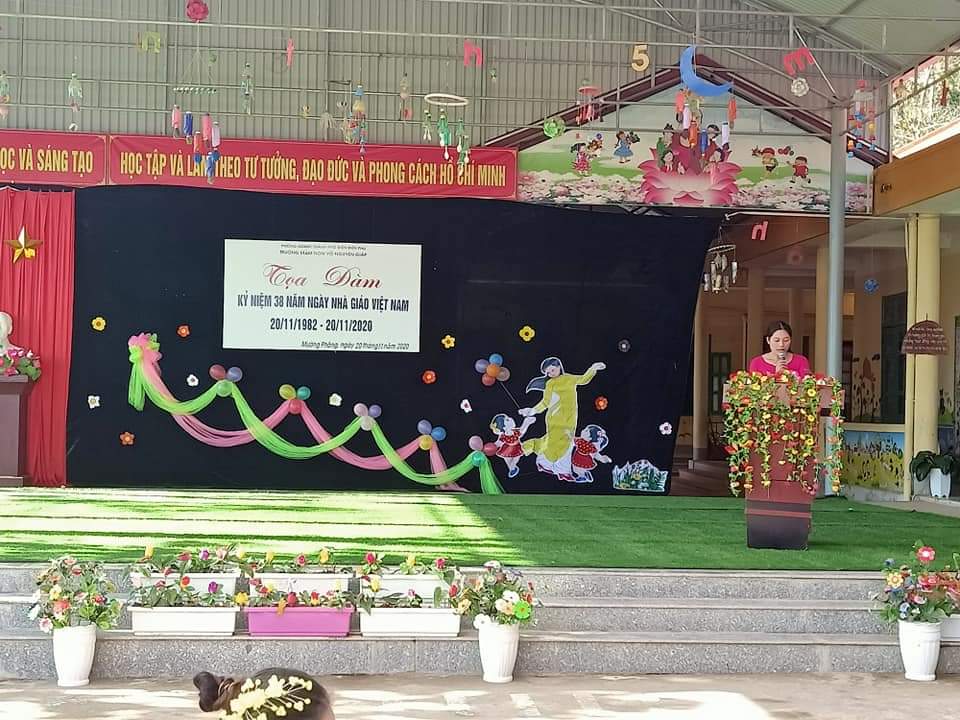 Ngày 20.11.2020 Trường mầm non Võ Nguyên Giáp tổ chức buổi tọa đàm kỷ niệm 38 năm ngày nhà giáo Việt Nam 20-11. Về Thăm và tặng quà cho nhà trường có đồng chí: Lê Minh Tú ủy viên BTV Thành  ủy trưởng ban tổ chức Thành ủy, Đồng chí Cao Đại Dương Phó chủ tịch UBMTTQ thành phố Điện Biên Phủ, Đ/c Nguyễn Thị Huyền Phó trưởng phòng nôi vụ Thành phố Điện Biên Phủ. Tham dự buổi lễ có Lò Văn Tâm – Chủ tịch UBMT xã Mường Phăng. Ông Lò Văn Phin- Trưởng Ban đại diện cha mẹ học sinh trường,  các đơn vị đóng quân trên đại bàn. Đại diên kho K31 thuộc bộ chỉ huy quân sự tỉnh điện Biên, hợp tác xã Hoa ban, hợp tác xã Thành Phát cùng toàn thể các cô giáo trong trường mầm non Võ Nguyên Giáp cũng về dự đông đủ.