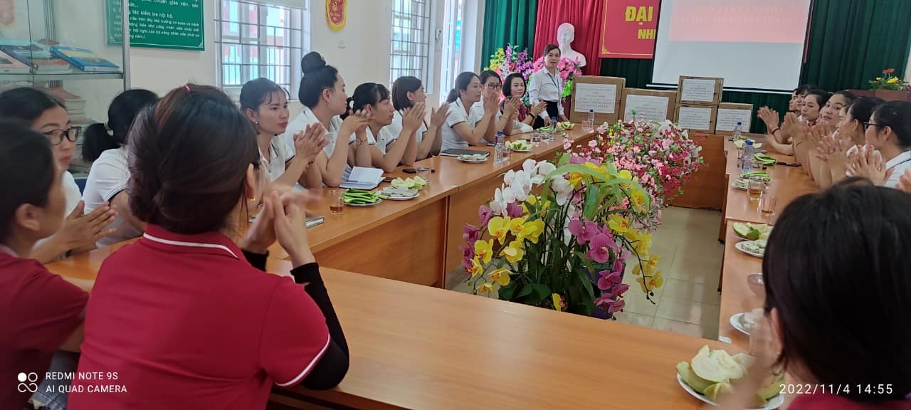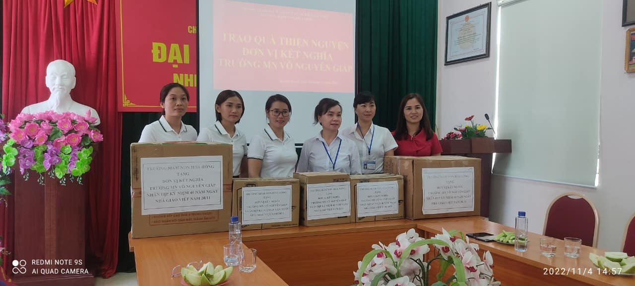 Nhân dịp kỷ niệm 40 năm ngày nhà giáo Việt Nam 20/11/2022. Chiều ngày 4/11/2022 tại trường Mầm Non Hoa Hồng đã tặng quà trường kết nghĩa Mầm Non Võ Nguyên Giáp xã Mường Phăng thành phố Điện Biên Phủ.Trường Mầm Non Võ Nguyên Giáp xin cảm ơn những món quà vô cùng ý nghĩa ( trị giá 2.250.000đ gồm Mắm, súp, dầu ăn, bánh đa) của trường Mầm Non Hoa Hồng, đúng là yêu thương nối tiếp yêu thương.Ngoài ra đây cũng là buổi sinh hoạt chuyên môn vô cùng ý nghĩa và bổ ích giữa hai nhà trường để cho các cán bộ giáo viên học hỏi và giúp đỡ lẫn nhau.