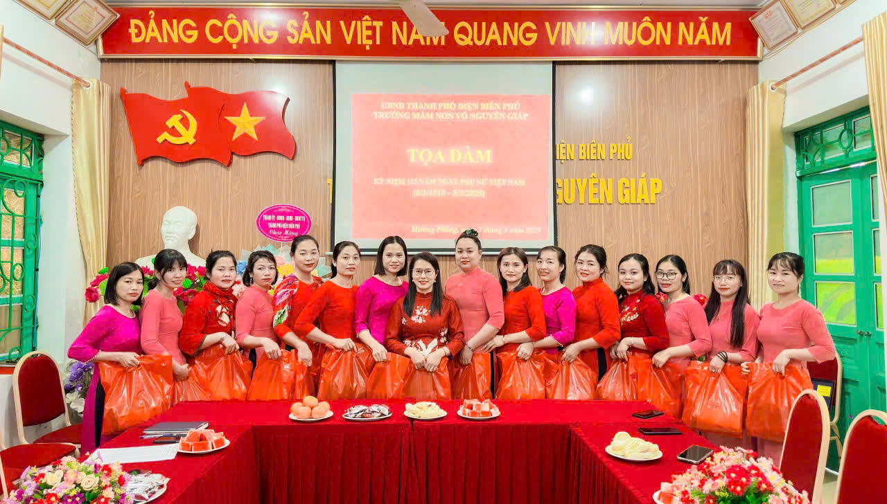 Hòa trong không khí vui tươi, phấn khởi đó tập thể Cán bộ, giáo viên, nhân viên trường mầm non Võ Nguyên Giáp xã Mường Phăng đã tổ chức tuần lễ áo dài được các cô hưởng ứng rất nhiệt tình mang đến một màu sắc tươi vui, mới mẻ cho tuần dạy học và cùng nhau ôn lại lịch sử ngày Quốc tế phụ nữ 8/3 trong buổi tọa đàm đầy ý nghĩa.