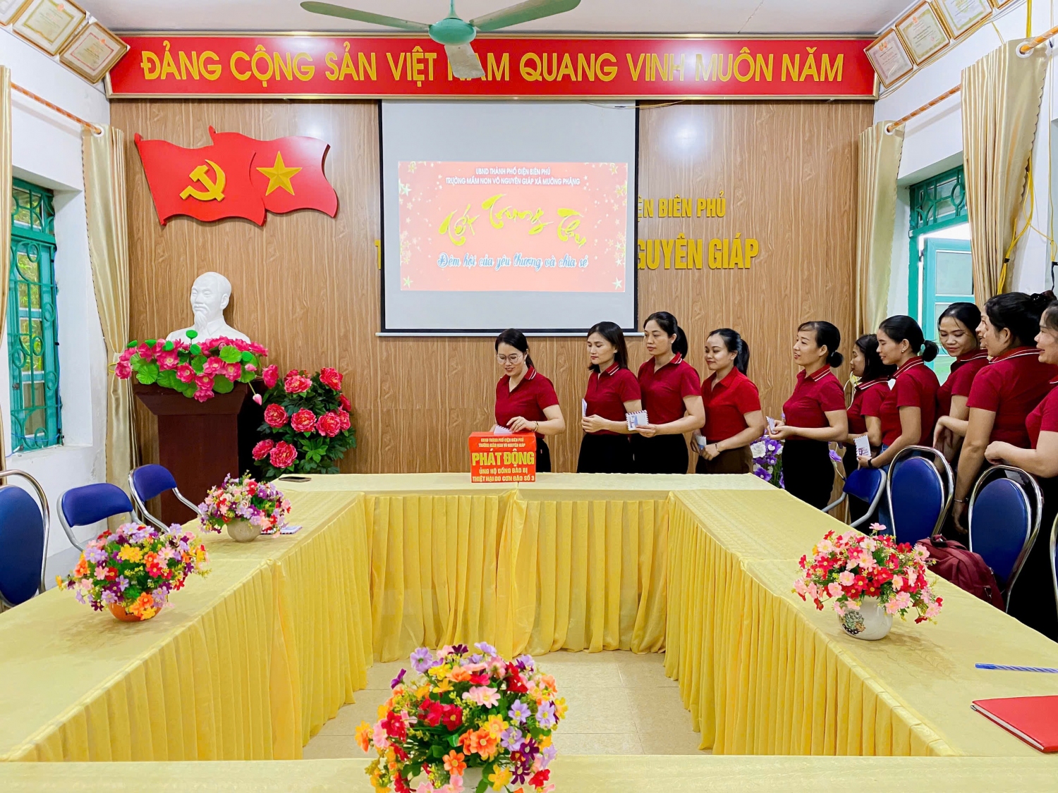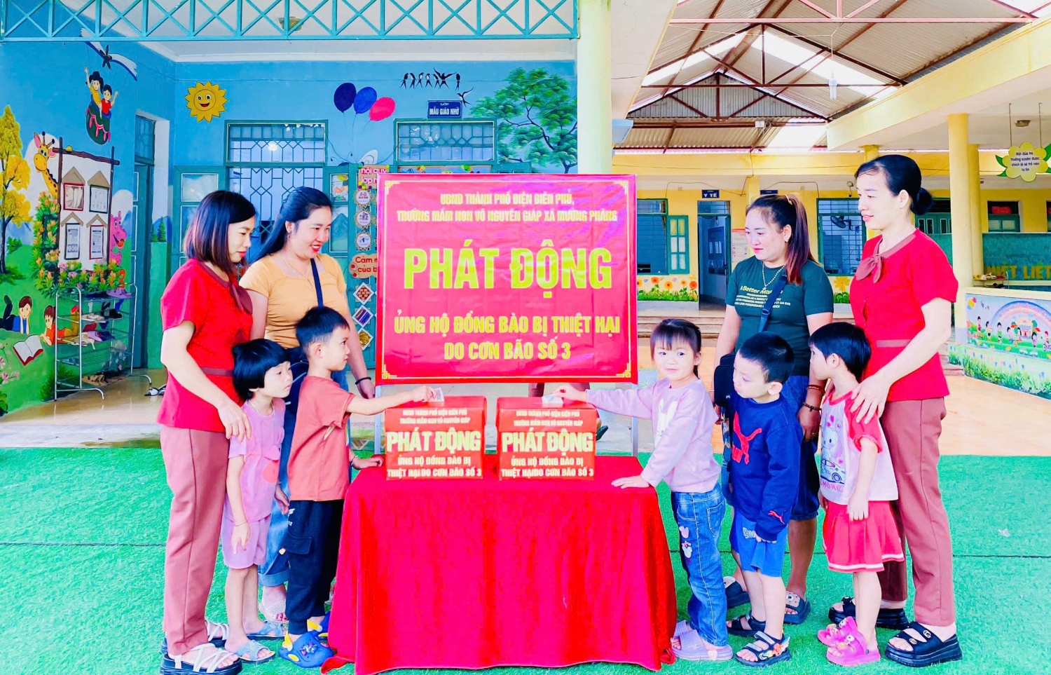 Trung Thu năm 2024, thay vì những hoạt động tưng bừng, rộn rã, Trường Mầm non Võ Nguyên Giáp, xã Mường Phăng đã tổ chức chương trình "Tết trung thu - Đêm hội của yêu thương và chia sẻ" để ủng hộ đồng bào bị thiệt hại do bão lũ. Tổng số tiền nhà trường quyên góp được là: 6.240.000 đồng sẽ được chuyển về tài khoản của UBMTTQ Việt Nam tỉnh Điện Biên để kịp thời phân bổ, hỗ trợ tới các địa phương bị ảnh hưởng do cơn bão số 3 gây ra. Qua đó, tích cực chung tay góp sức, ủng hộ về tinh thần và cả vật chất để giúp đỡ nhân dân các tỉnh, thành phố bị thiệt hại do bão lũ gây ra cũng như giúp người dân vượt qua mọi khó khăn mất mát, sớm ổn định cuộc sống và và các bạn học sinh sớm được tới trường học tập.