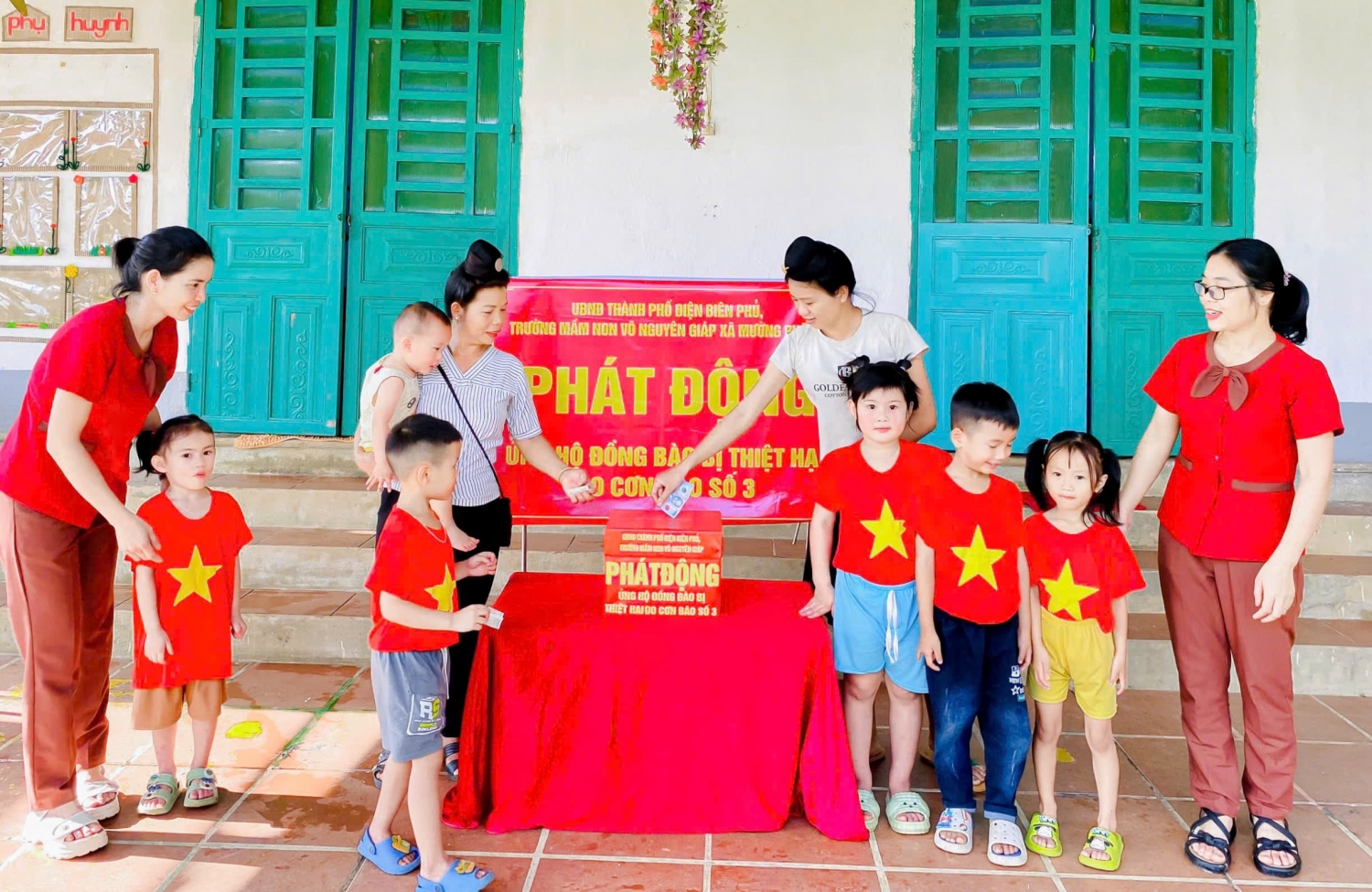 Trường mầm non Võ Nguyên Giáp xã Mường Phăng ủng hộ đồng bào bị thiệt hại do cơn bão số 3 gây ra.
