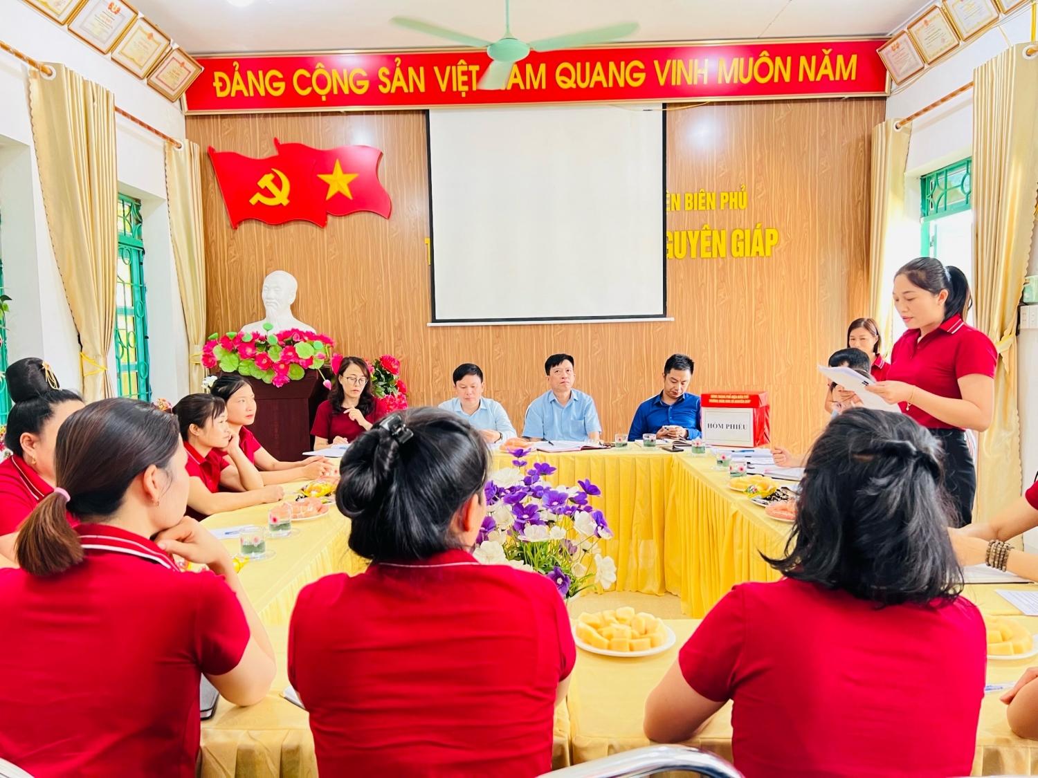 Hội nghị lấy ý kiến có sự tham dự của Ông: Lê Minh Tú - Ủy viên Ban thường vụ thành ủy, Trưởng ban Tổ chức thành ủy Điện Biên Phủ. Ông: Nguyễn Mạnh Tường- Ủy viên Thường vụ Thành ủy, Chủ nhiệm Ủy ban kiểm tra thành ủy Điện Biên Phủ. Ông: Mai Trọng Thuyết – Trưởng phòng Nội vụ thành phố Điện Biên Phủ. Bà: Nguyễn Hồng Ngọc –Phó trưởng phòng Giáo dục và Đào tạo thành phố. Ông Nguyễn Đức Nhuận – Cán bộ tổ chức Phòng Giáo dục và Đào tạo thành phố và 22/23 tổng số cán bộ, giáo viên, nhân viên Trường mầm non Võ Nguyên Giáp xã Mường Phăng.